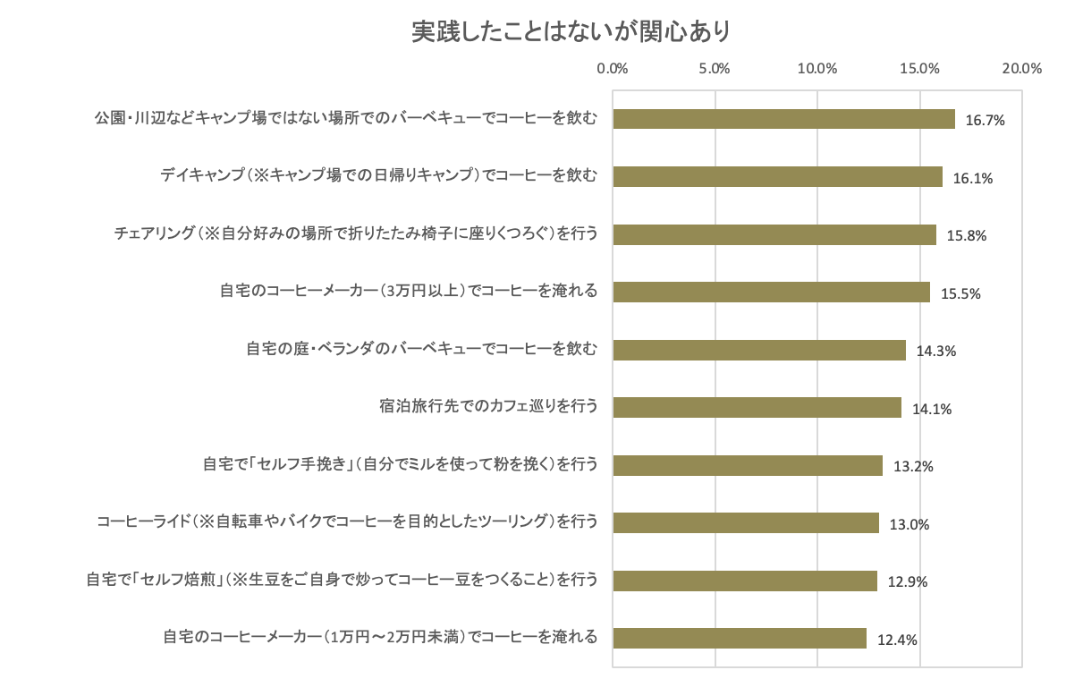 2.コロナ禍明けの楽しみ方としては、「チェアリング」等、アウトドアシーンでコーヒーを飲んだり、自宅内でも「自家焙煎に挑戦」など“シーンの拡大と深化”が見られる
