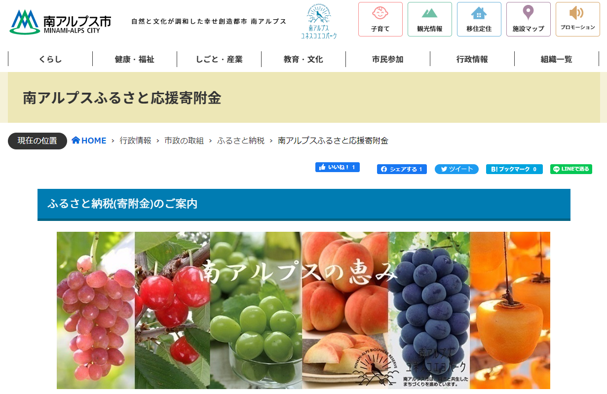 南アルプスふるさと応援寄附金HP:https://www.city.minami-alps.yamanashi.jp/docs/1794.html