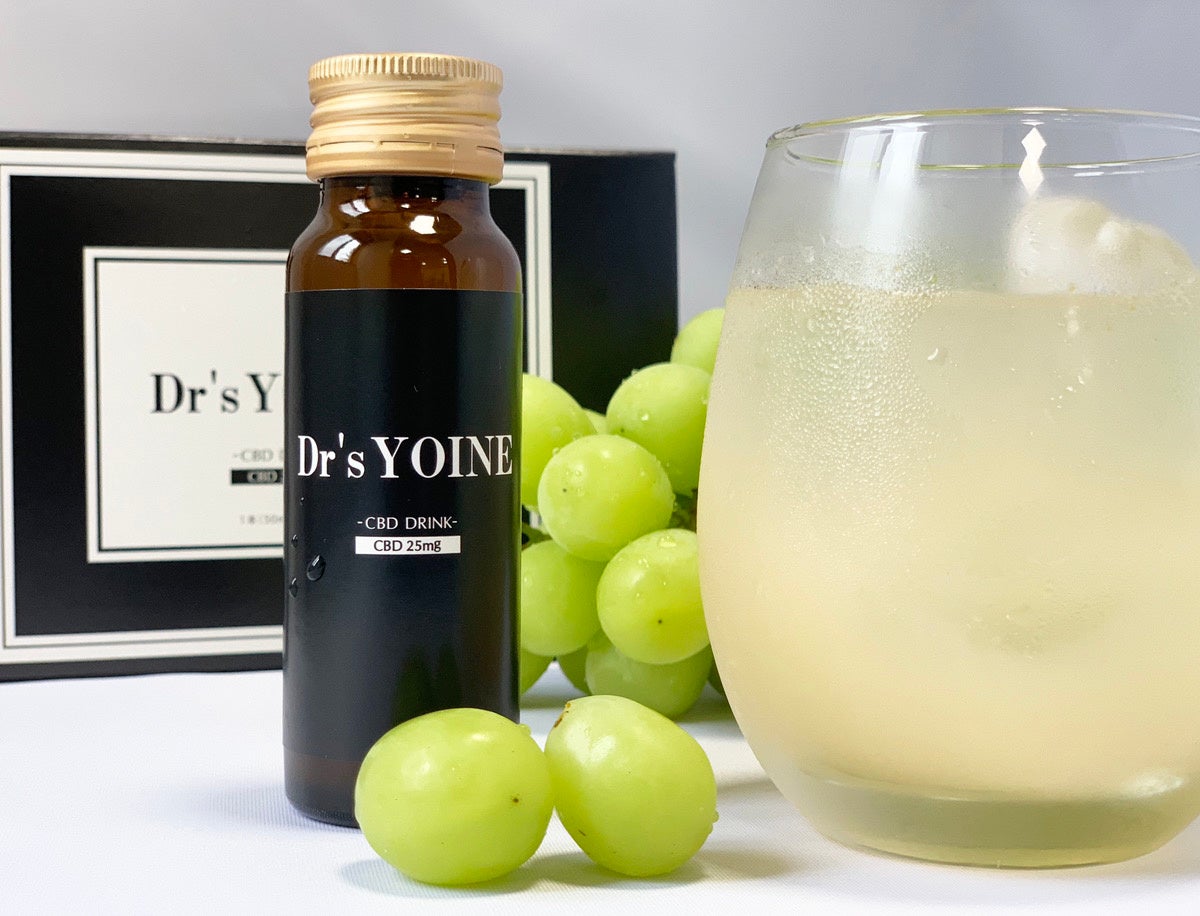 「Dr’s YOINE 水溶性CBDドリンク」は、内容量50ml中に水溶性CBDを25㎎含有した高濃度CBDドリンクです。すっきりしたマスカットの甘みがCBDの苦みを抑えて飲みやすく、さらにアルコールを含まないので、老若男女問わずお楽しみいただけます。