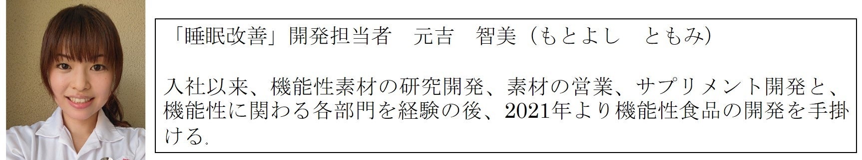 そこで機能性が一目で分かるパッケージにするために何度もデザイナーと議論を重ね、行きついたのは「新聞の小見出し」風デザインでした。誰にでも読みやすく目に入りやすいパッケージデザインが完成しました。過去に睡眠関連の商品を発売してきた当社の経験があったからこそ、必要とする方に寄り添った商品を作り上げることができたと感じています。