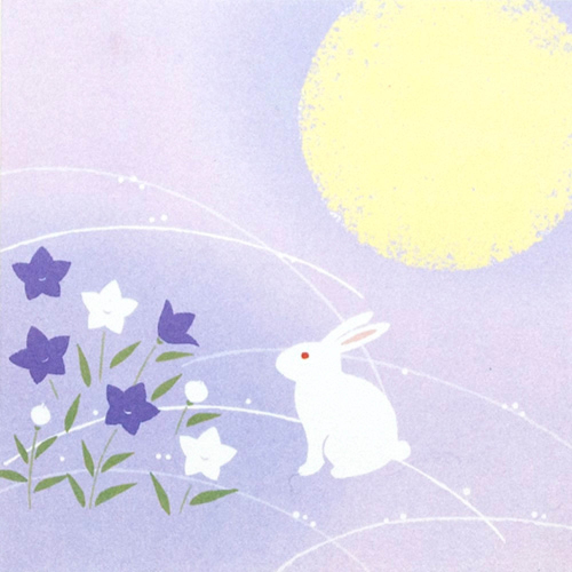 お月見にちなみ、満月のようにふっくらと丸い薯蕷饅頭(じょうよまんじゅう)に焼印を入れ、白うさぎのすがたを表しました。月とうさぎが結びついた由来は仏教説話の献身的なエピソード、また月の影がお餅をつくうさぎに見えることからなど諸説が伝えられています。上質なつくね芋を用いた自慢の薯蕷にこしあん入りです。