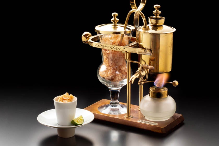 焼津産本枯れ節の香りをサイフォンでしっかり閉じ込めた、吉祥CARENオリジナルのスープ、鮑や金目鯛も味わえる贅沢なディナーは、料理に合わせたワインとともにお愉しみください。