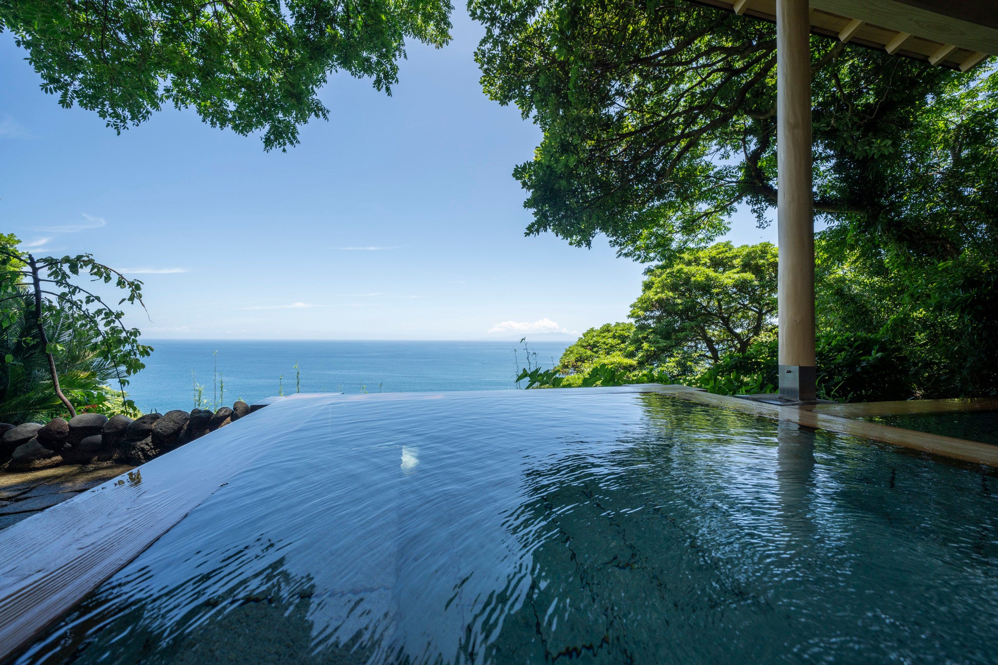 静かな海沿いの北川温泉(ほっかわ・おんせん)に佇む、全室オーシャンビュー、大人の隠れ家リゾート。お部屋やレストラン、インフィニティ温泉から、空と海が溶けあうような青と碧の絶景をご覧いただけます。