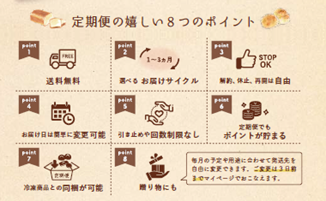 できる限りお客様にご負担にならない設定を心がけ、送料無料、解約の制限なしなど8つの嬉しいポイントを定めました。