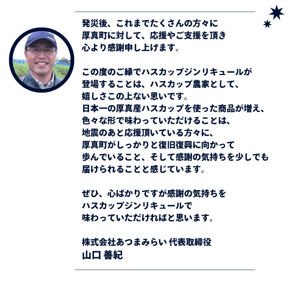 厚真町の特産物であるハスカップが、今回のプロジェクトを通じて多くの方に伝わり、かつ美味しい商品を提供することで、ハスカップ自体の価値も上がっていくことを期待しています。
