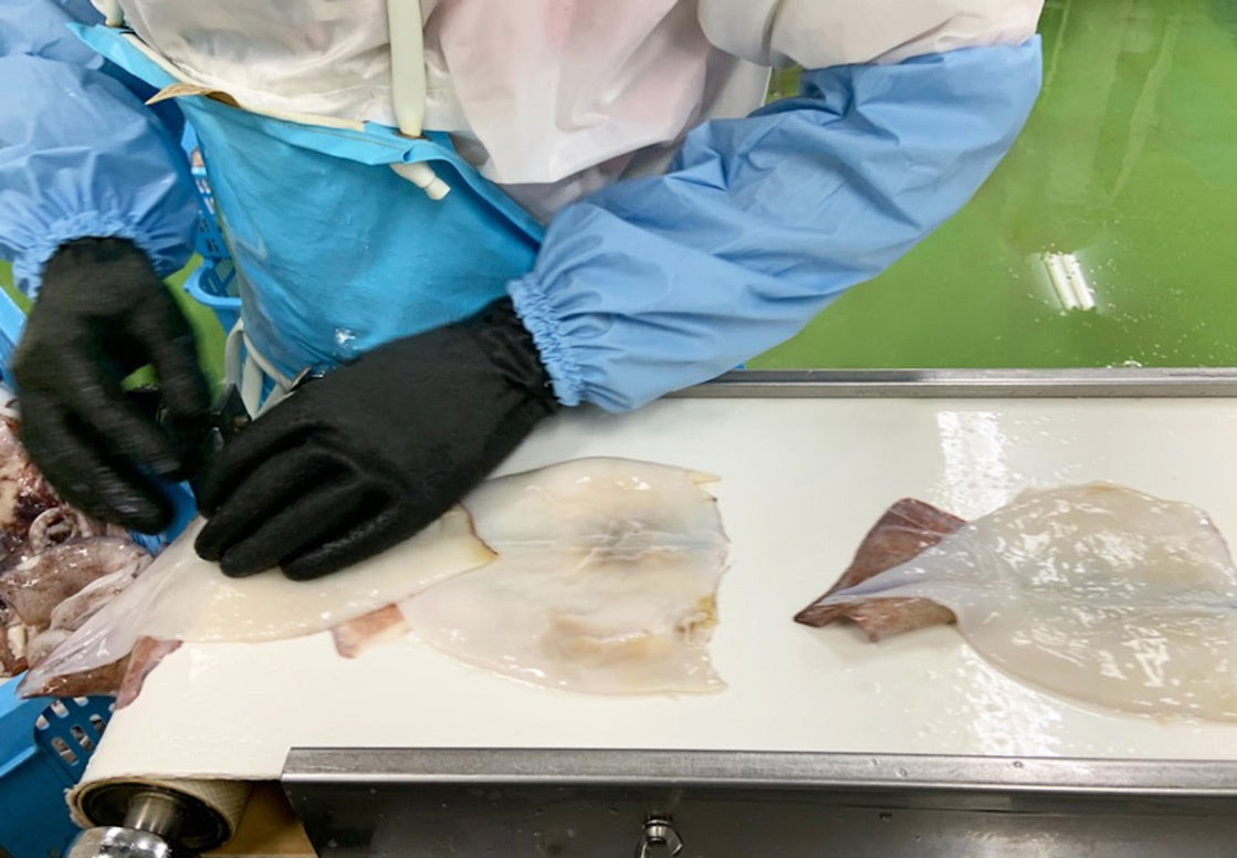 北海道産のスルメイカは、年々漁獲量が減少しており、約10年間で10分の1程度まで減ってきています。漁獲量減少に伴い、価格の高騰化も進み、今では大変希少な食材となっております。今回はその希少なスルメイカでも、特に柔らかな“胴身のみ”を原料に選び、贅沢に使用しました。