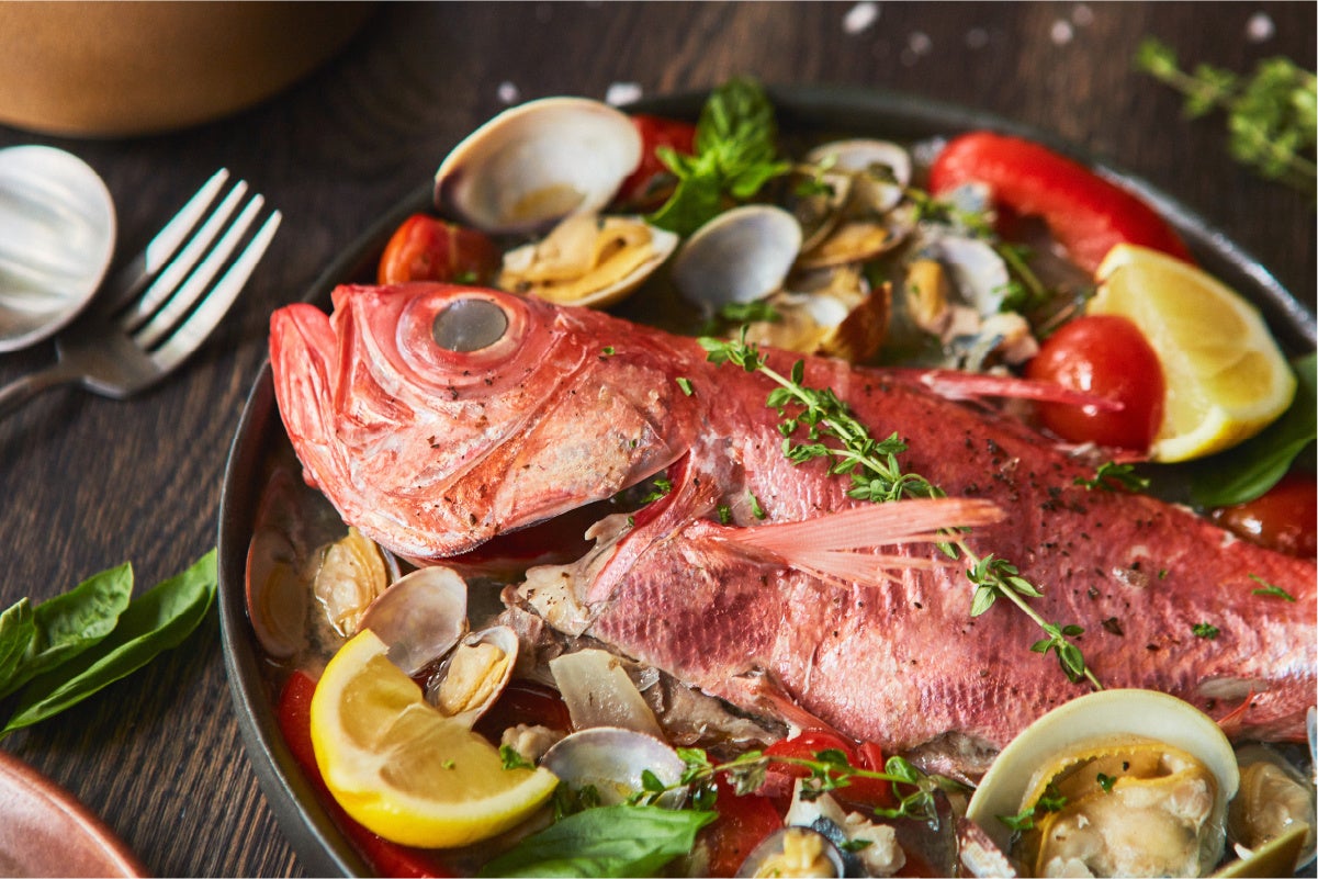 イタリアの伝統料理”アクアパッツア”風に仕上げました。