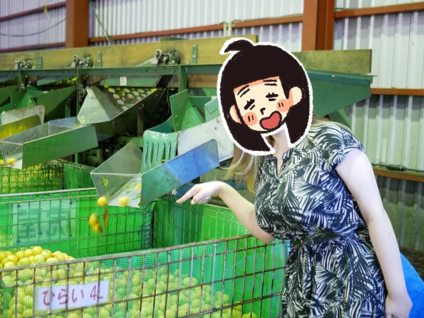 写真は、梅のことをより知ってもらうべく梅農家の繁忙期である6月に和歌山県白浜町の本社に足をお運び頂き、実際に木になっている梅をご覧いただくのに梅畑や梅干しの漬け込みを現場を訪れている際の様子です