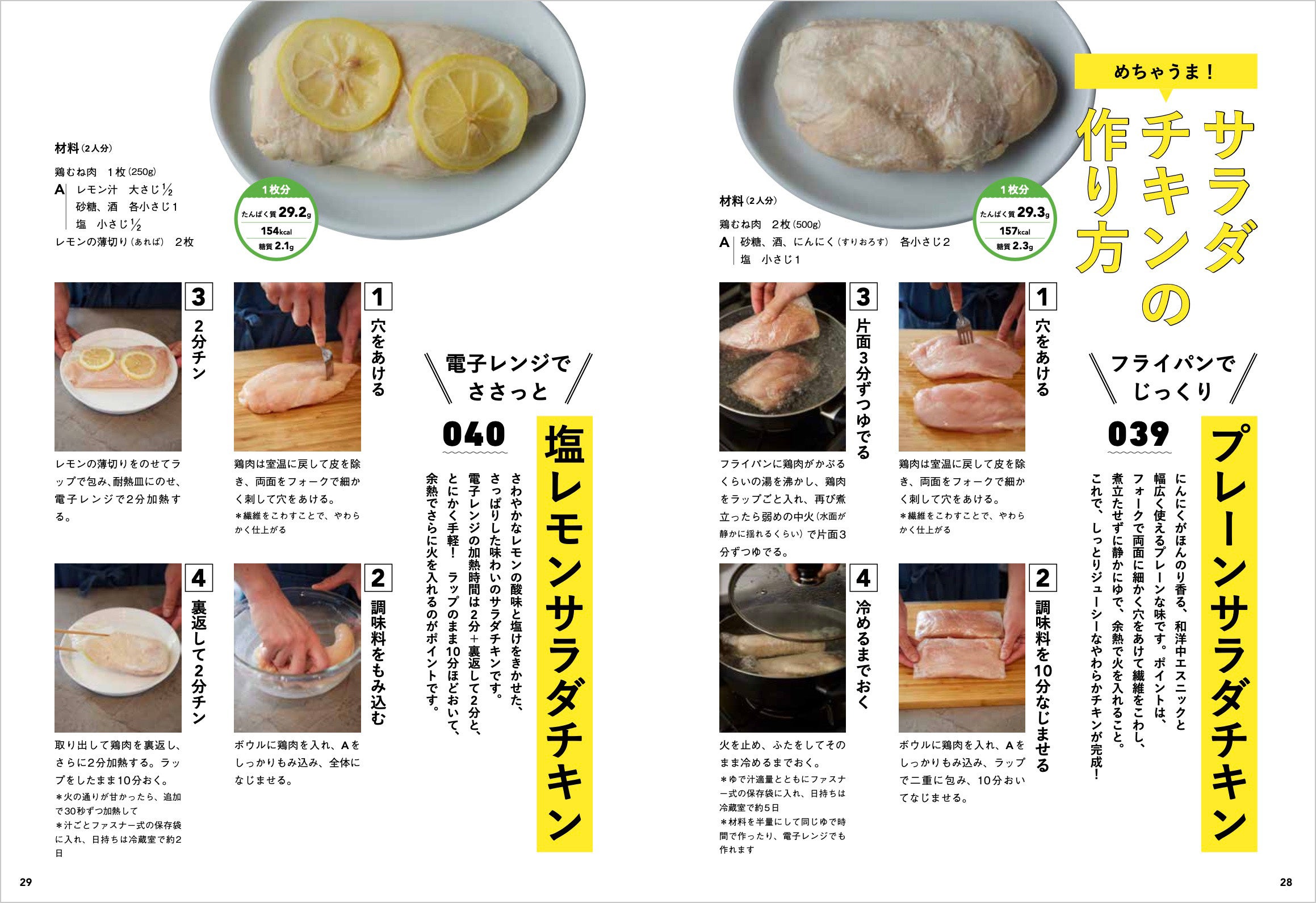 ③まだまだ大ブームのサラダチキンも、レンチン&フライパンの2つの作り方で紹介。手軽にバラエティ豊かなフレーバーが楽しめます!