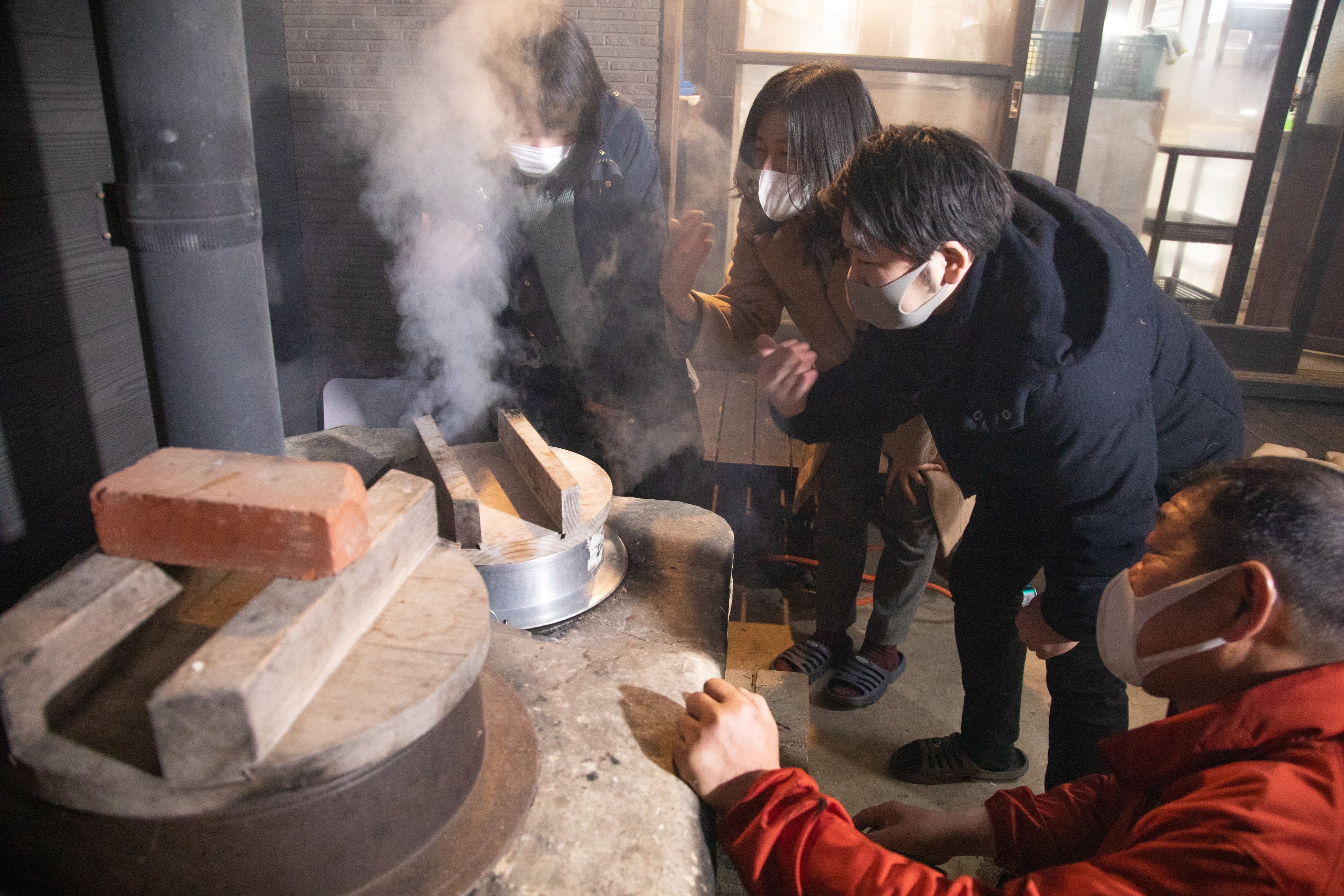 1日目に宿泊していただくのは市街地から山側に20kmほど進んだところにある「高柳町」のかやぶき屋根の古民家。ここで新米のかまど炊き体験などを行なっていただきます。1日目の夕食は地元のお母さんが作る里山料理「ごっつぉ」もお楽しみに。