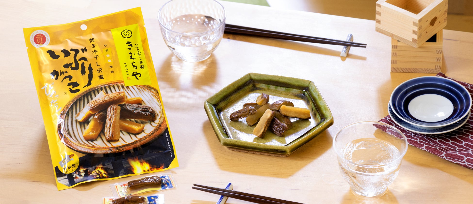 秋田伝統の味として広く全国的に親しまれている「いぶりがっこ」は、元々、冬場の食糧難を解決するための保存食として考えられ、冬の寒さ、雪の多さにも負けず、家族においしいものを食べさせたいとする家庭の知恵から生まれたと言われています。当社もお子様からご年配の方まで多くのお客様においしさを伝えることを信条としている中、伝統とおいしさを半世紀以上にわたり守られている「いぶりがっこ本舗 雄勝野きむらや」の思いを知り、お漬物をお菓子としても食べられるよう遊び心を加え、本商品を生みだしました。広く知られるいぶりがっこの起源「いぶりがっこ本舗 雄勝野きむらや」だからこそできる伝統の味を気軽にどこででも味わっていただきたいと考えて、個包装に仕上げております。