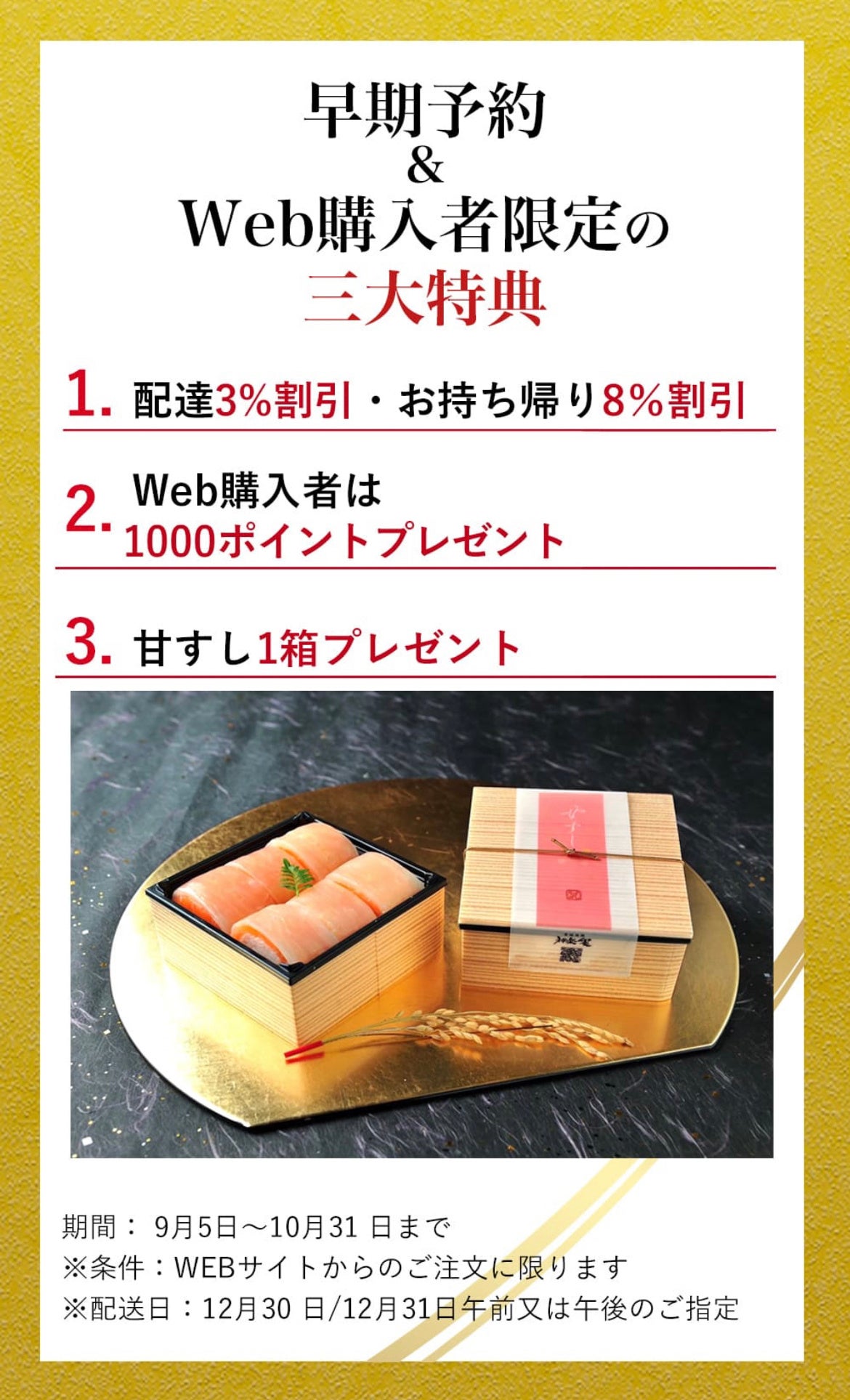 昨年好評であった【WEB会員様、早期予約3大特典】を今年も開催。10月31日までにご予約の方が対象。