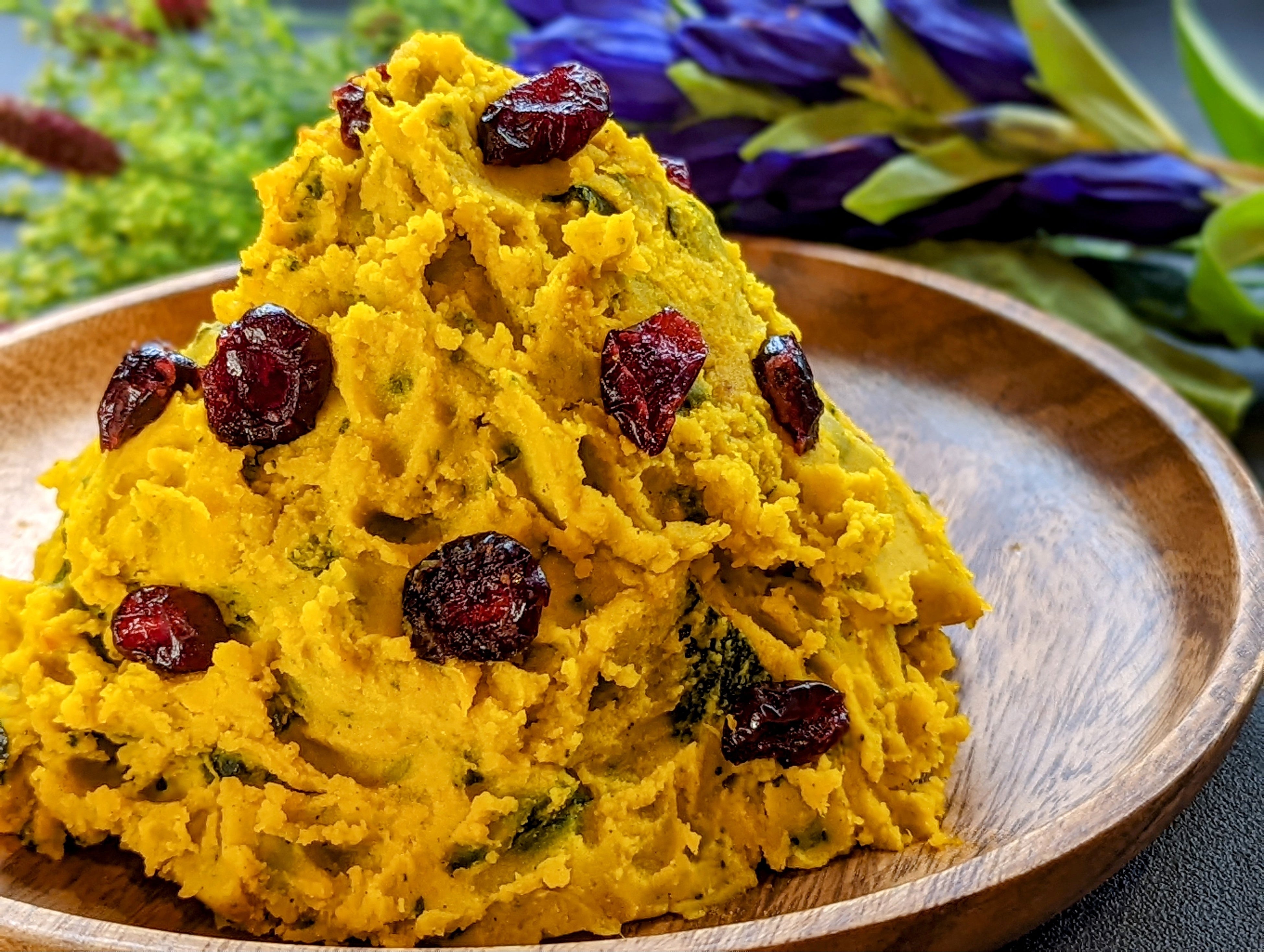 皮まで丸ごと使ったかぼちゃの甘みと、ドライクランベリーの甘酸っぱさがアクセントの、スイーツ感覚で楽しめる、秋らしいサラダです。