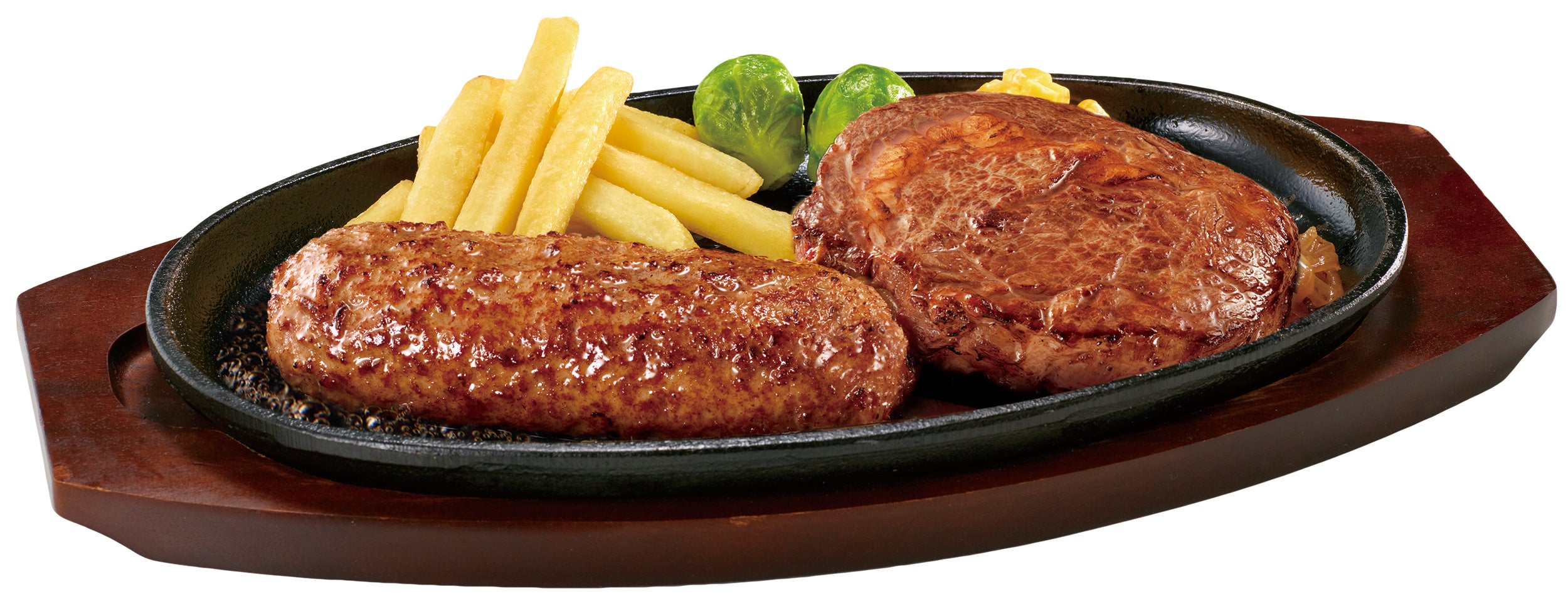 ▲「炭焼き超粗挽きビーフハンバーグ&炭焼きファイブスターリブロースステーキ」