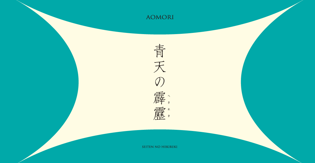 「青」は青森の青、「天」は遥かに広がる北の空。「霹靂」は稲妻。稲に寄りそい、米を実らせます。晴れわたった空に、突如として現れる稲妻のような、鮮烈な存在になりたいと考え、名付けました。米袋などの図案は、空がパカッと割れて「青天の霹靂」が飛び出してきた様子を表現しました。白い米の旨さが天の四隅にのびやかに広がっていきます。
