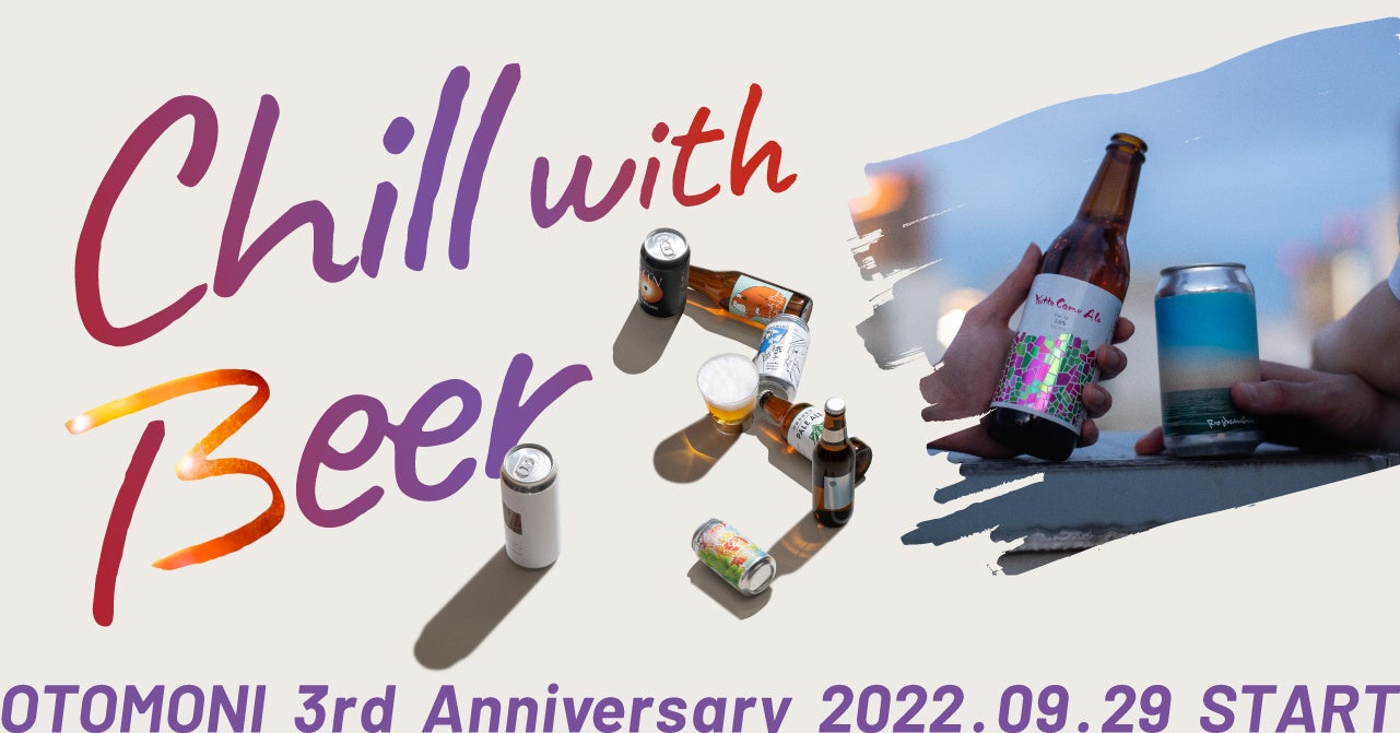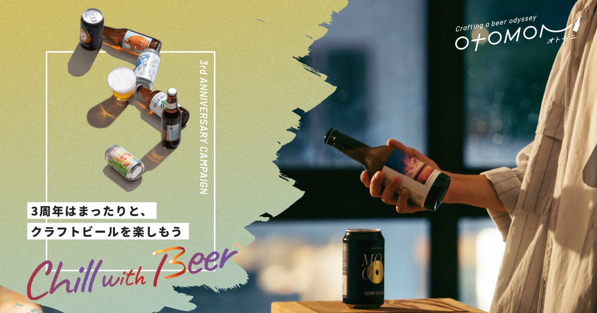 クラフトビールのサブスク「Otomoni(オトモニ)」を運営するmeuron株式会社(本社:東京都豊島区 代表取締役:金澤俊昌)は、サービス開始3周年を記念してリラックスできる時間を後押しすることができるクラフトビールを皆様と作り上げる「Chill with Beer/3周年はまったりと、クラフトビールを楽しもう」キャンペーンを開始。投票型オリジナルクラフトビール醸造や、キャンペーン限定アプリ機能などもリリース。