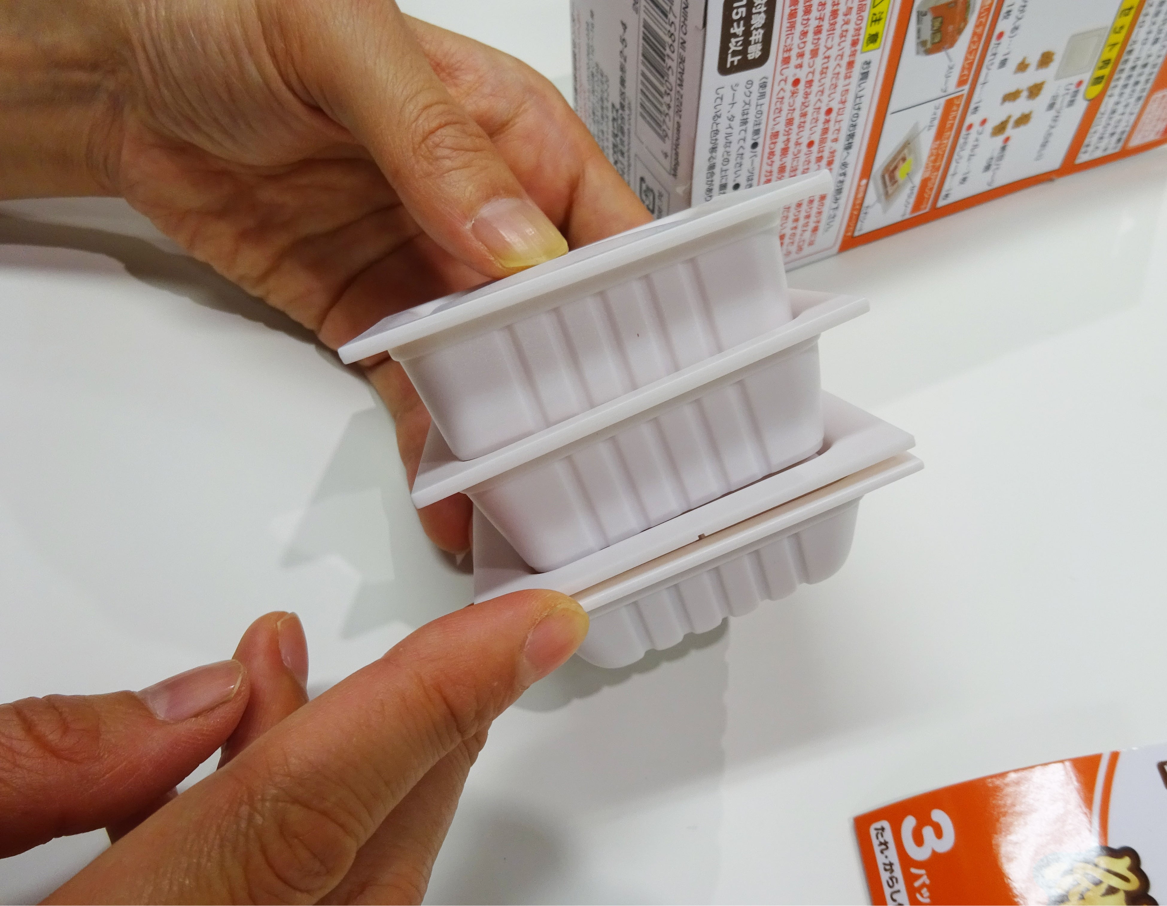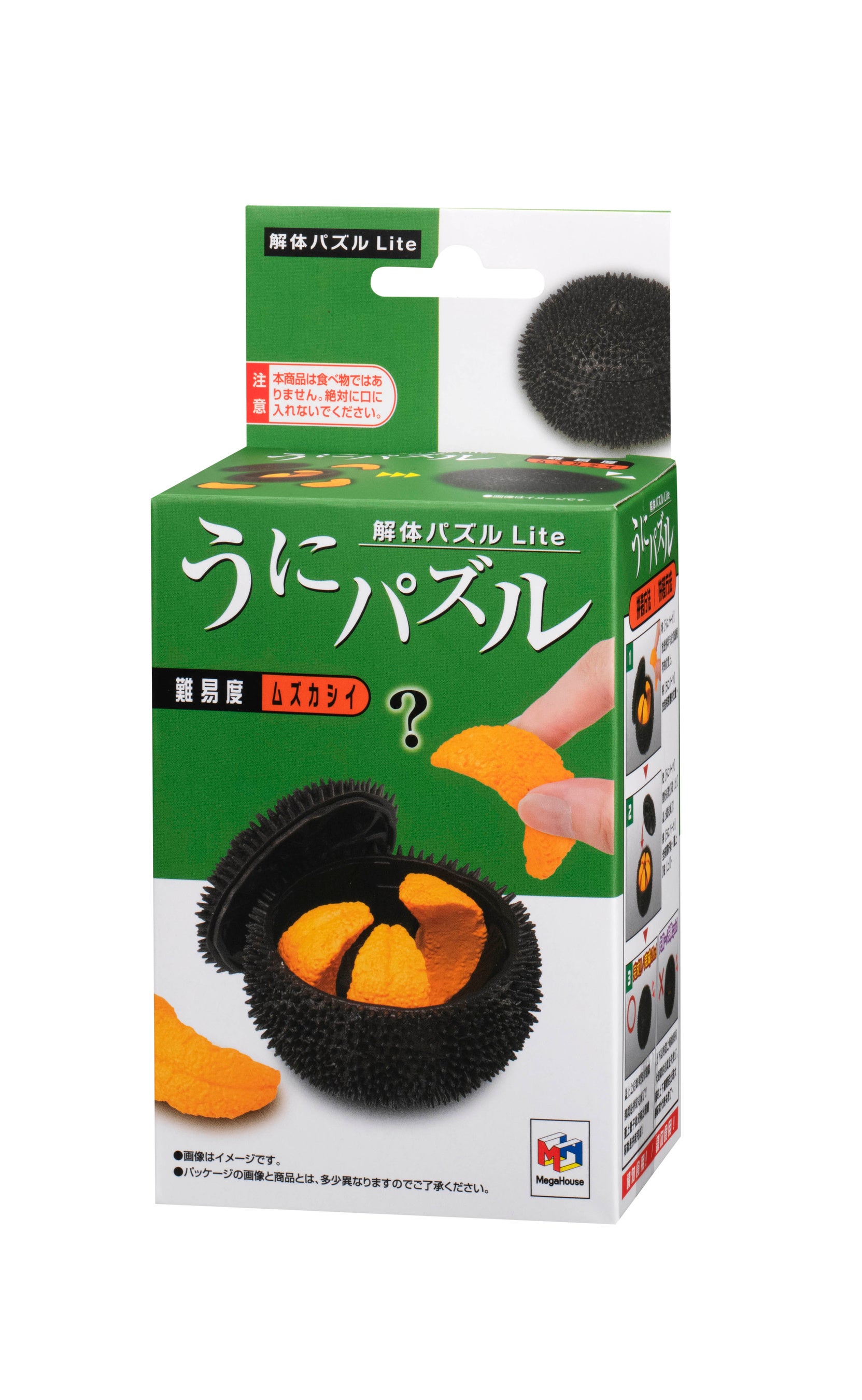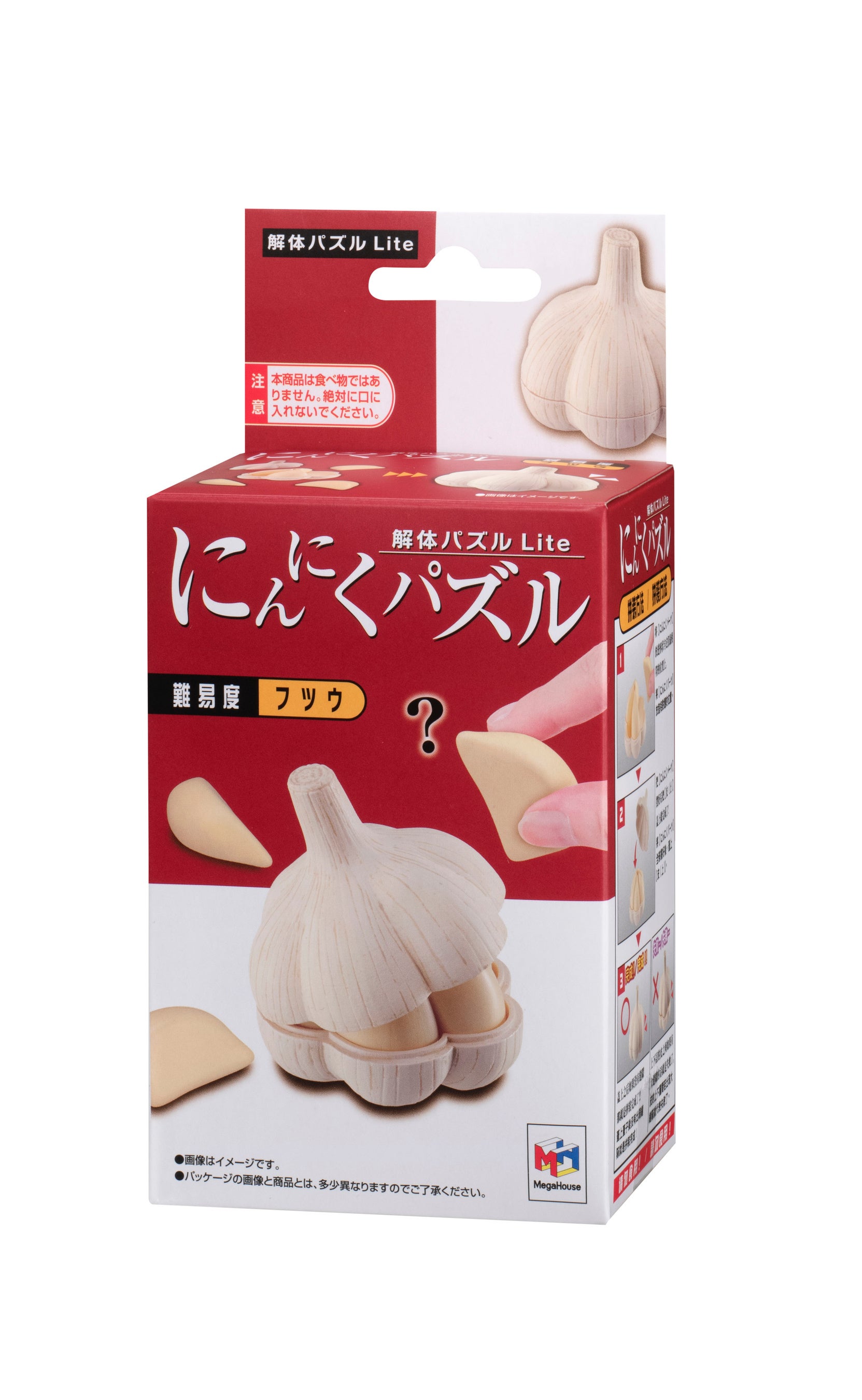 同商品は、容器に入っている納豆を完成させるパズルで、①6つの納豆パーツをうまく組み合わせて容器に入れる②フィルムとからしシートとたれシートを入れて蓋をする③容器を3つ重ねる④スリーブを巻く、この4つの工程で遊ぶことができます。納豆パーツは、正しい位置に入れないとふたが閉まらず、 容器も正しい順番で組み合わせないと重なりません。本物そっくりの造形と絶妙な難しさが特長の立体パズルをお楽しみください。
