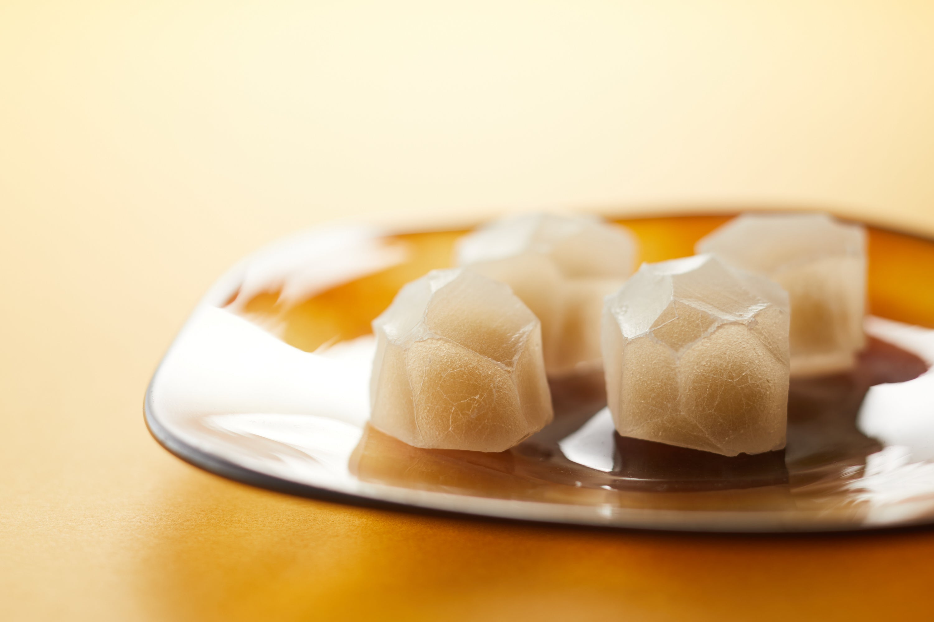 熊本県産の栗を裏ごし、白餡と合わせて炊き上げた栗きんとん生地を干琥珀で包みました。国産栗の豊かな風味と干琥珀の食感をお楽しみください。