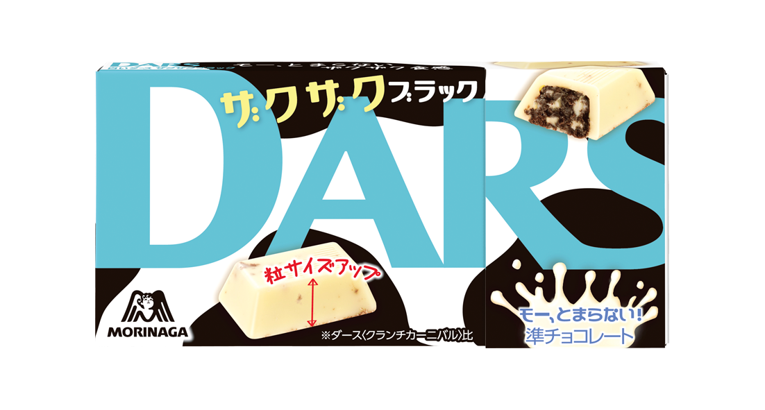 白いダースの中に、ブラックビスケットクランチがたっぷりと入ったザクザク食感を楽しめるホワイトチョコレートです。