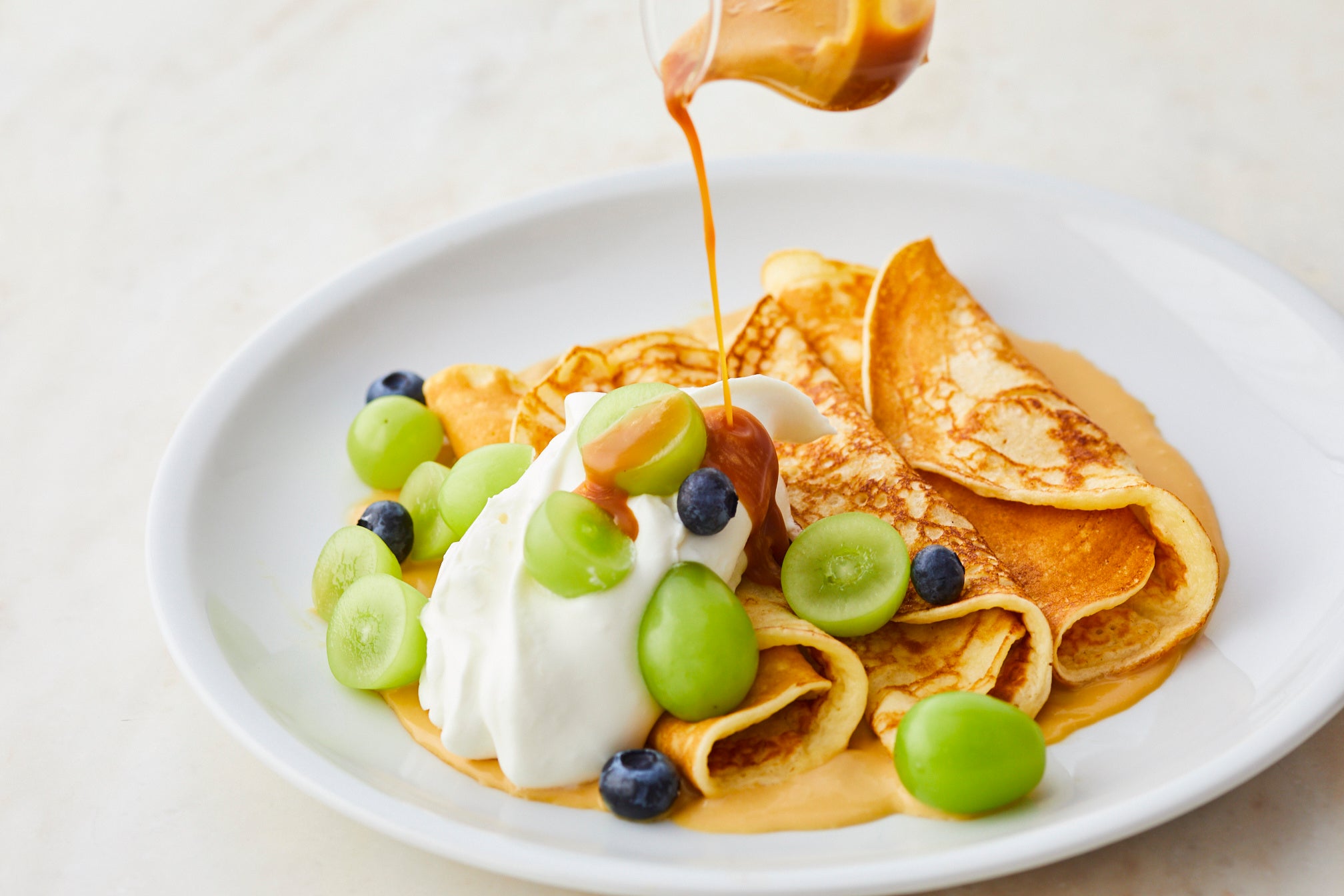 バターミルク由来のモチモチ生地を薄めに焼き、くるくるとロール状に巻いたパンケーキは、味わいそのままにより軽い食感が特徴です。