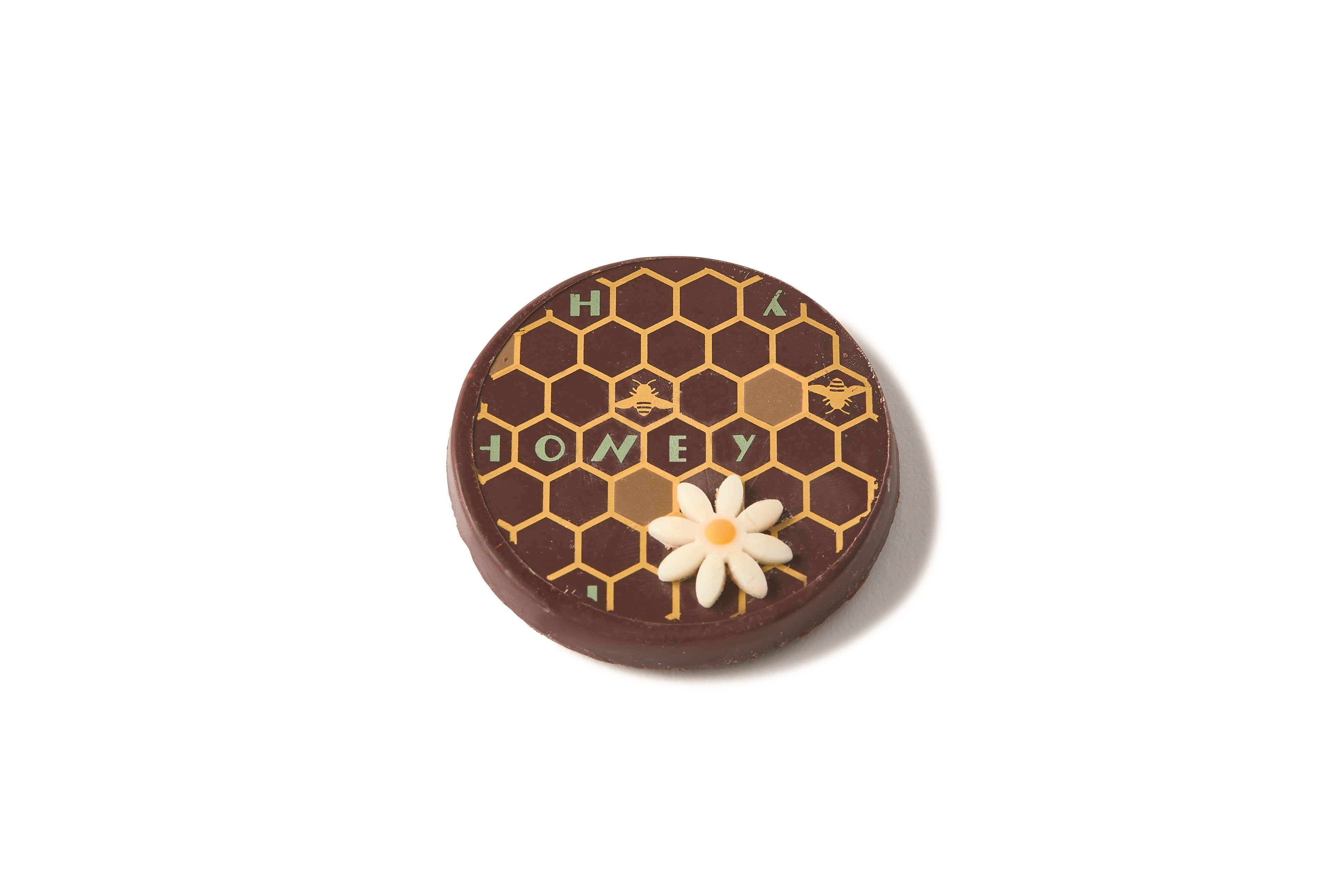 中央にMIELはちみつを使用。厚さ、食感にもこだわり、かわいらしくデコレーションされたパレショコラ。