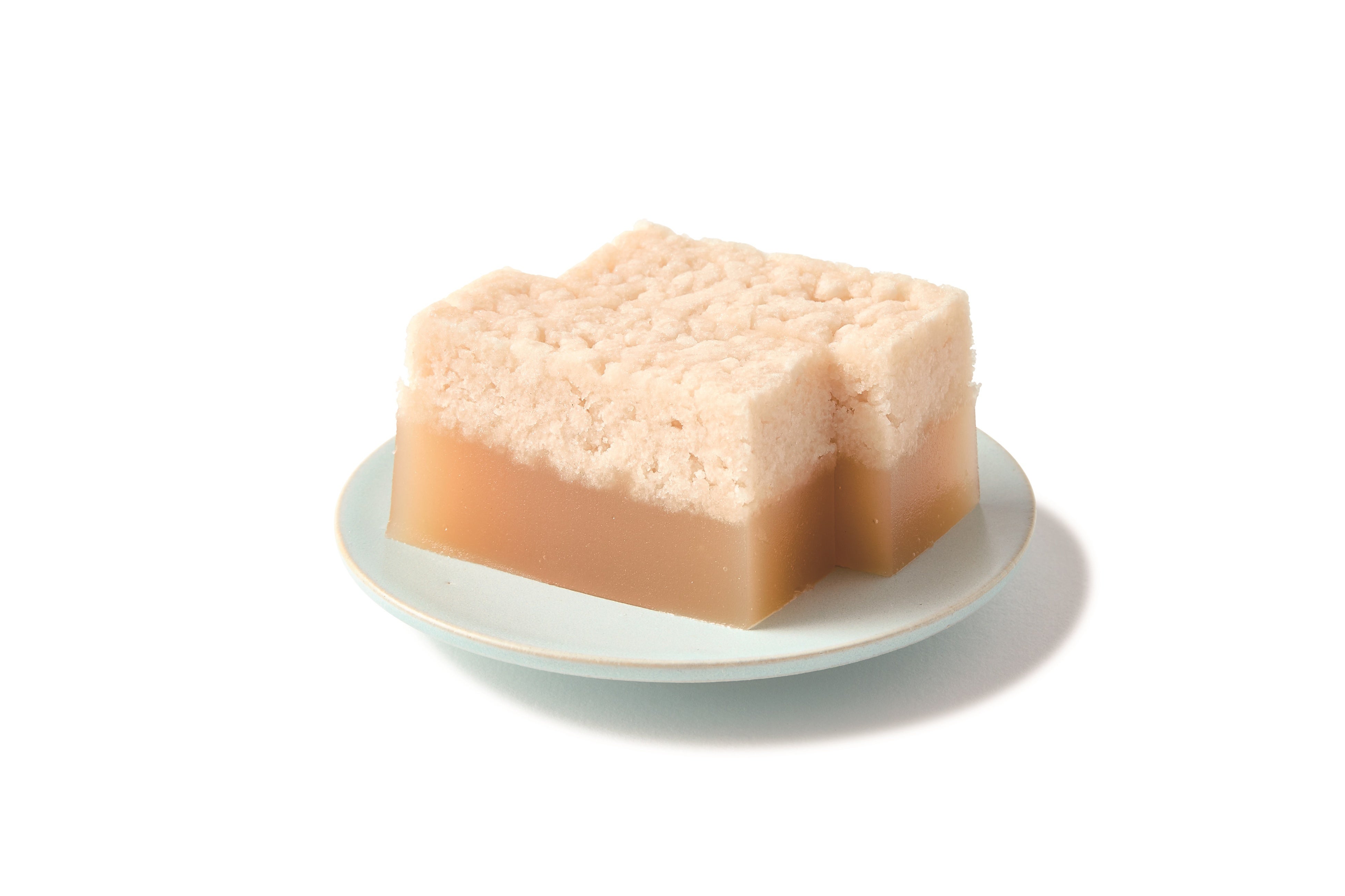 MIELはちみつを練り込んだ羊羹に村雨生地を重ねた棹菓子。断面の美しさ、食感や味の違いをお愉しみください。