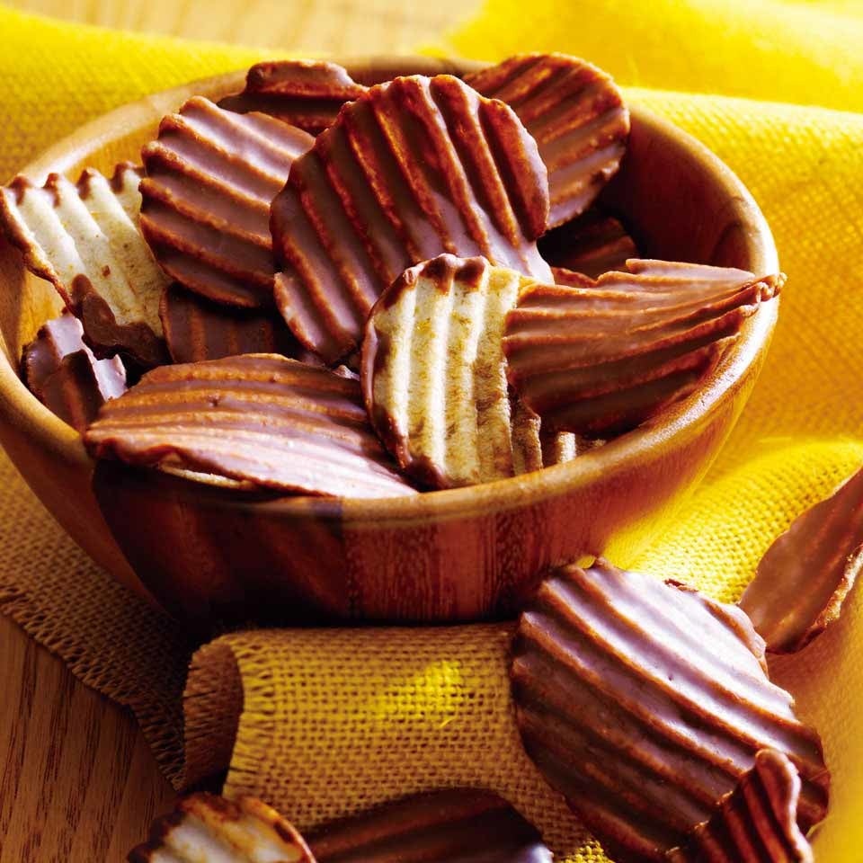 ポテトチップとチョコレート、意外な組み合わせから生まれた大ヒットのおいしさ。パリッとした軽快な食感のポテトチップの片面に、口どけの良いチョコレートをコーティングしました。チョコレートの甘さとポテトチップの塩味が織りなすハーモニーをお楽しみください。