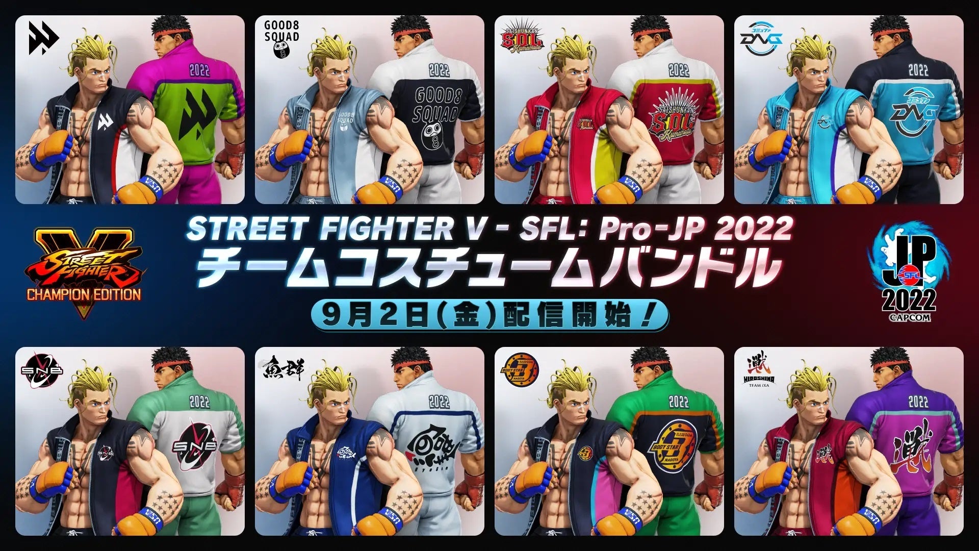 PlayStation®4とPCにて好評発売中の『ストリートファイターV チャンピオンエディション』。全45キャラクターで使用できる「ストリートファイターリーグ: Pro-JP 2022」出場チームコスチュームが2022年9月2日より配信中です。