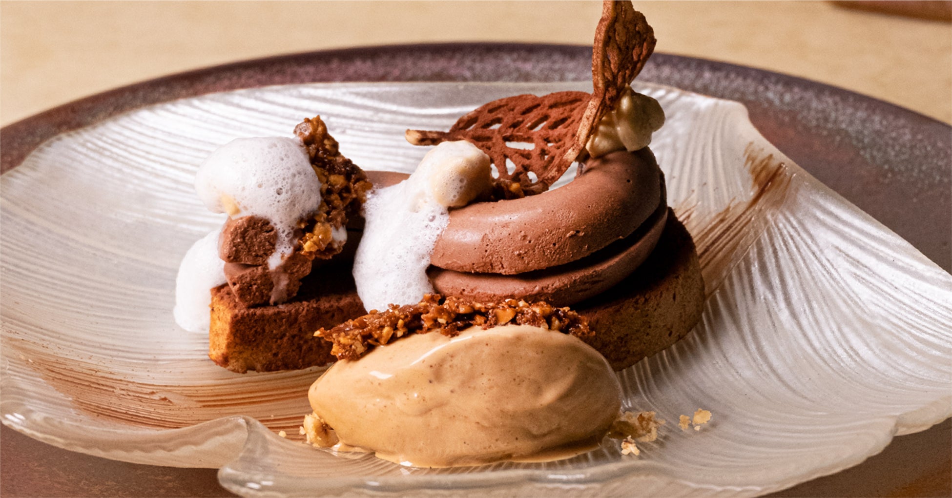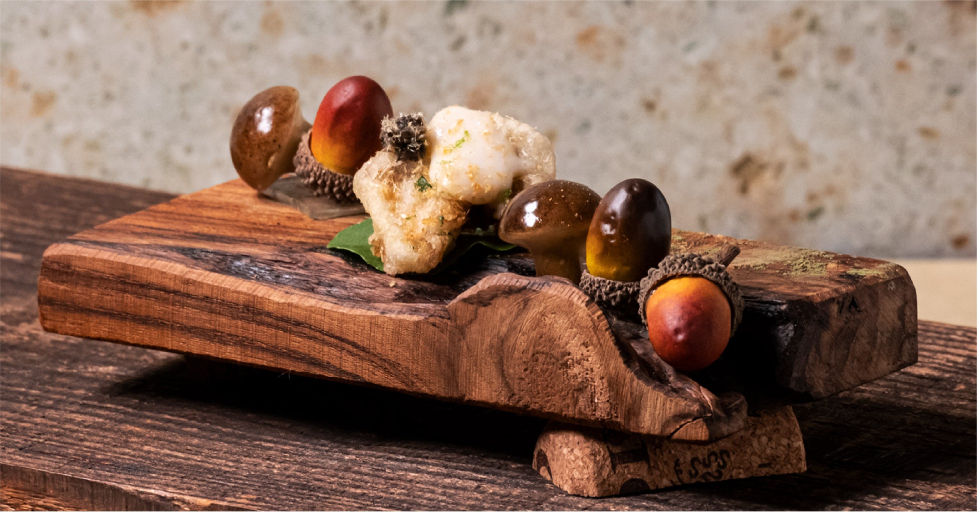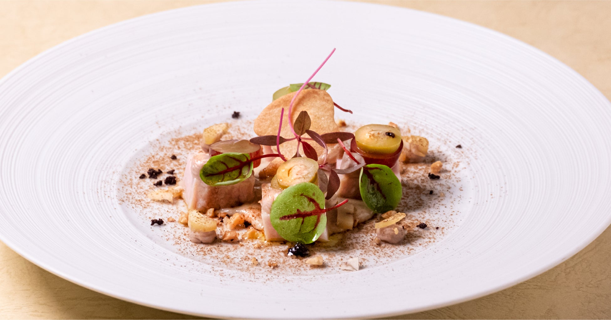 あいち鴨や群馬県鳥山牧場の赤城和牛などシェフ選りすぐりの食材に、木の実やきのこなど旬の味わいをたっぷりと添えて。“食欲の秋”を刺激するひと皿ひと皿は、物語を想起させる美しい盛り付けでお楽しみいただけます。味覚だけでなく視覚でも味わう秋のごちそう8品をどうぞ、お召し上がりください。