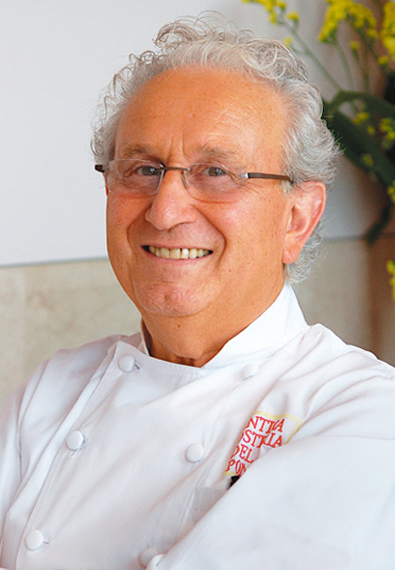 1976年、ミラノ郊外の橋のたもとに立つ古い旅籠を買い取り、改修し、念願の店を開きました。その時すでに39歳。料理人としては異例の遅い出発でしたが、独学の天才は、それから花開きます。彼は当初、ロンバルディア料理をベースとしていましたが、研究熱心が嵩じてフランスへ渡り、フランス料理のプレゼンテーションを学びました。そして、地方料理の伝統を根底におきながらも、独創性に富み、繊細にして上品かつ優美な『アンティカ オステリア デル ポンテ』の料理を誕生させました。