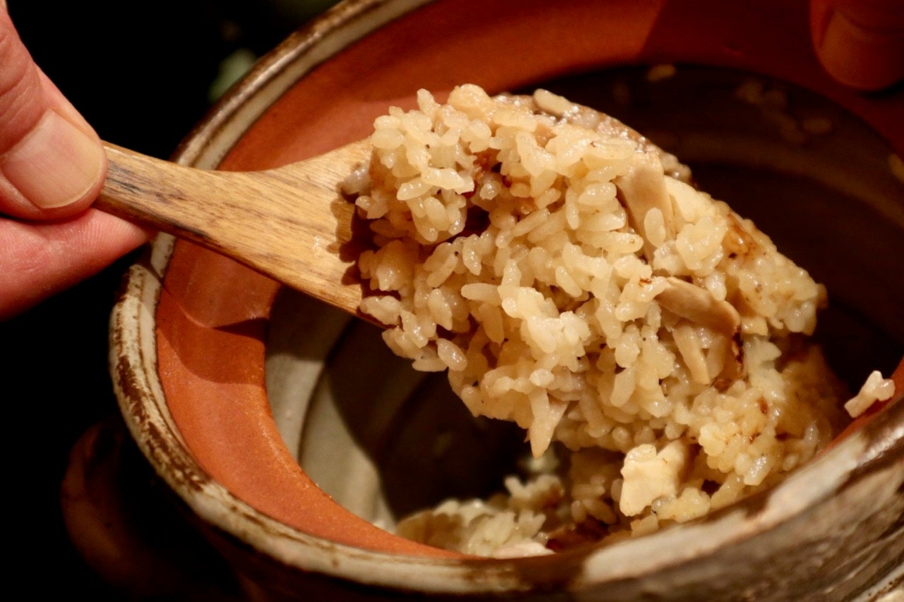 フィナーレに登場するのは松茸の上品な香りを纏い、松茸の旨味をたっぷりと吸い込んだ土鍋ご飯。
