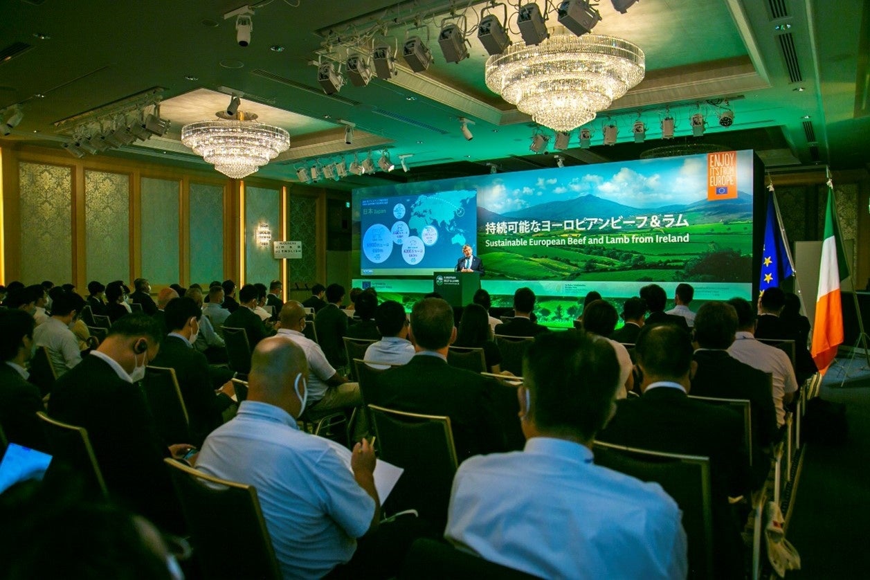 この発表会の翌日には、東京で65名バイヤーやメディア関係者を招いて業界向けトレードセミナーを開催、このセミナーでは、チャーリー・マッコナローグ農業・食糧・海洋大臣、ダミアン・コール駐日アイルランド大使が出席し、アイルランド産の、ヨーロピアン ビーフ&ラム のサステナブルな生産方法についてのプレゼンテーションを行いました。