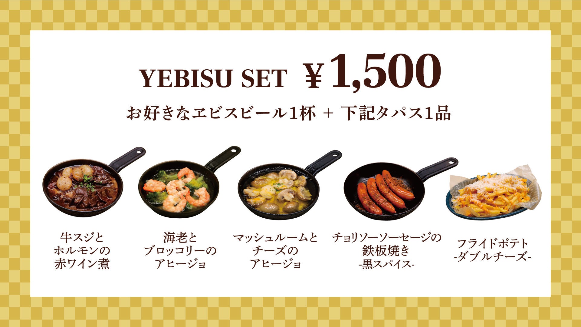3種からヱビスビール1杯 + 下記からお好きなお料理1品で→1500円