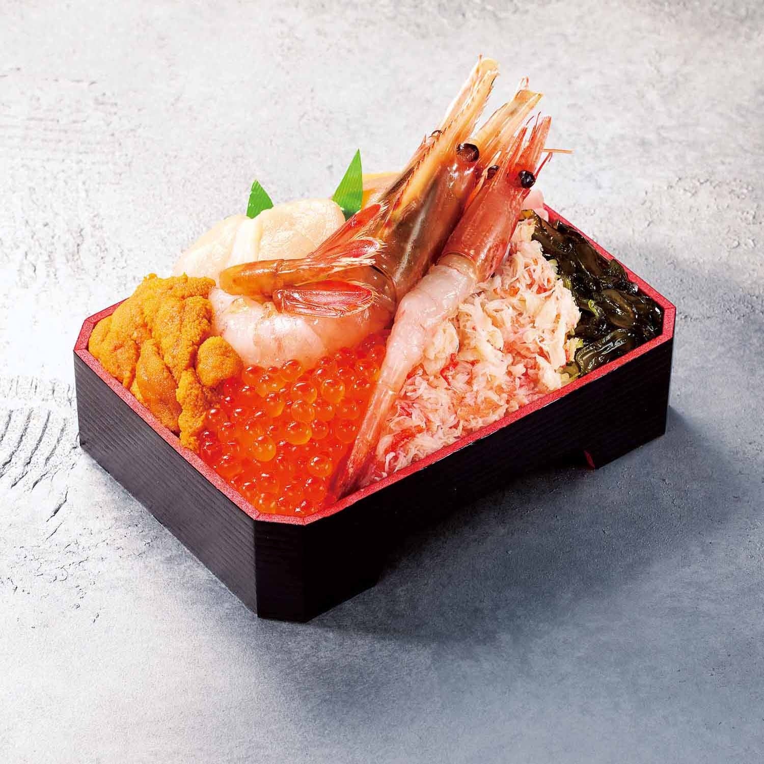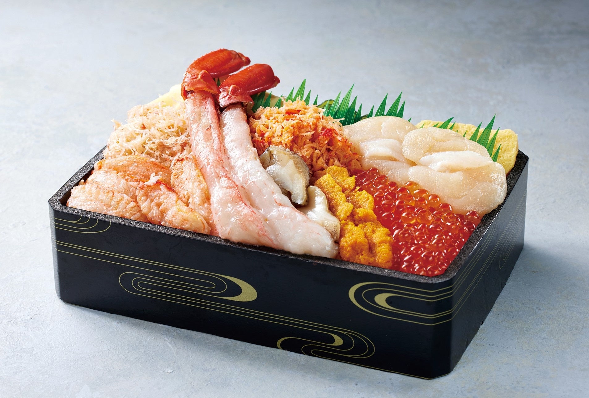 北海道産のかに・うに・帆立など道産にこだわった弁当。