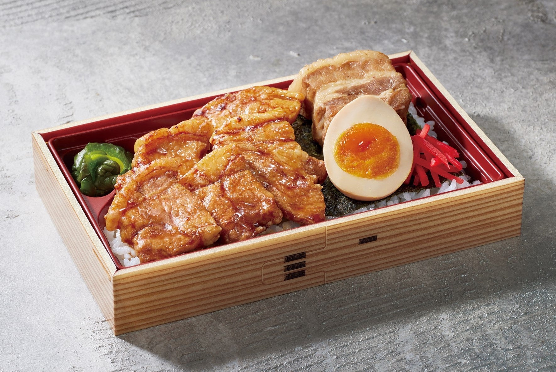 名物の豚丼と角煮が味わえる食べ応え満点弁当。
