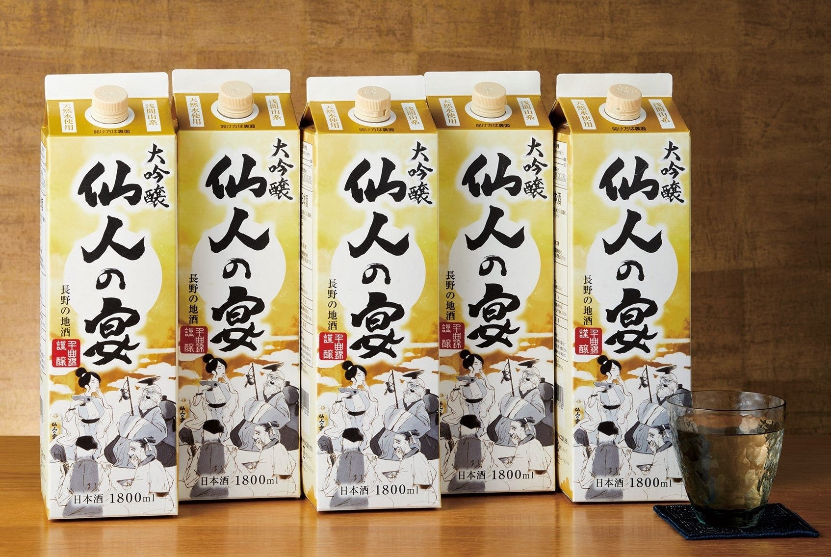 また今年4月の発売時に1か月で完売した大吟醸パック酒から、待望の第2弾となる「大吟醸 仙人の宴1.8Lパック5本組」が新登場。創業340年の歴史ある千曲錦酒造との共同開発で誕生した、こだわりの香りと旨みのバランスをお楽しみいただける利酒師監修の本格派な大吟醸酒です。