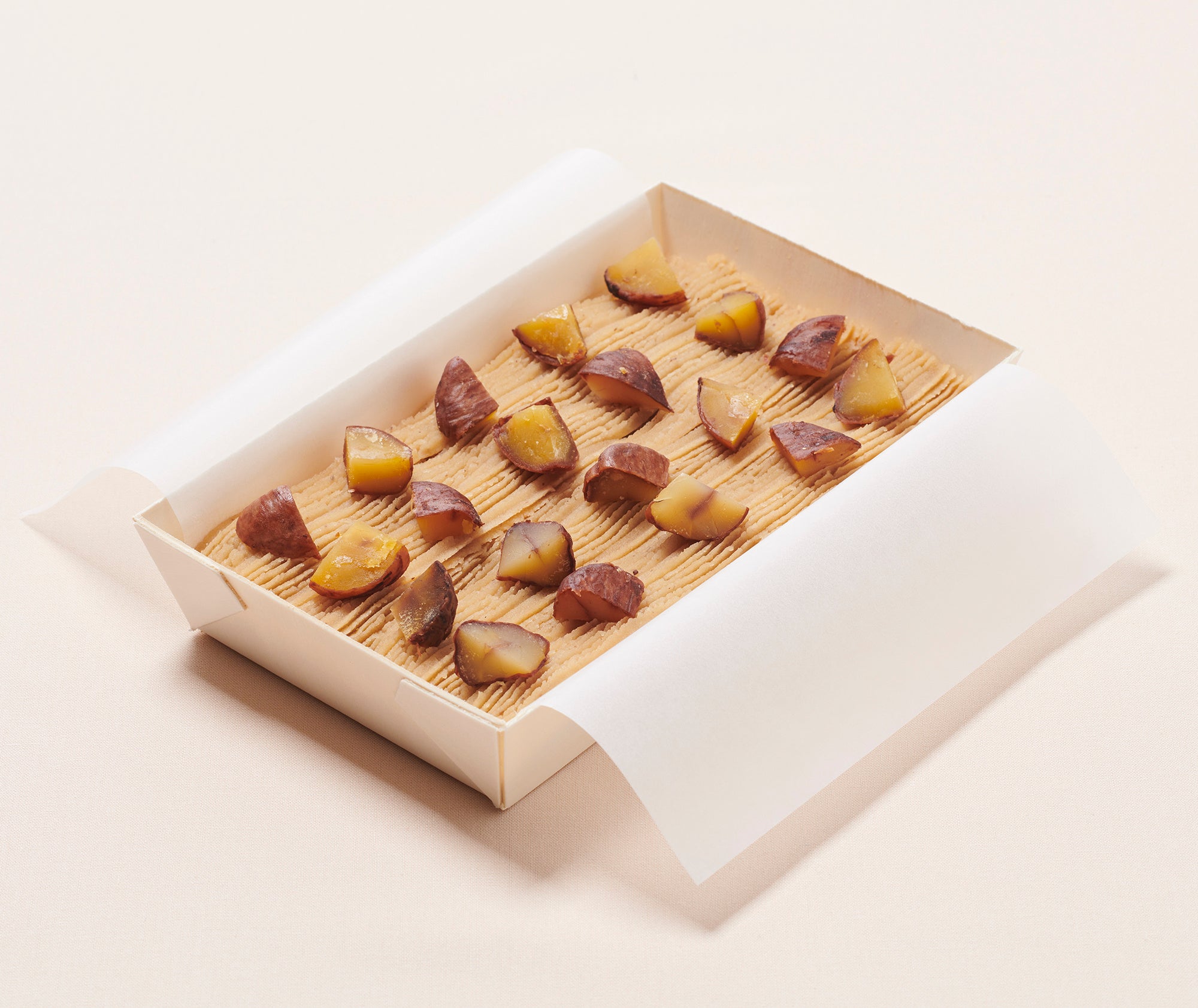 栗の優しい甘みとバターのコクがあわさった栗餡に、渋皮栗の甘露煮の食感がアクセント。季節の移ろいを旬の素材とともにお楽しみください。