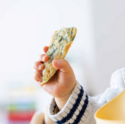 手づかみ食べをする期間は、おおよそ9か月頃から2歳前後までと、意外と長い期間があります。 また、近年BLWという赤ちゃん主導の食事方法による、口育や知育の考え方も日本で盛んになってきています。今後メニューを増やし、赤ちゃんが自分で食べるスタートを応援していきたいと考えています。