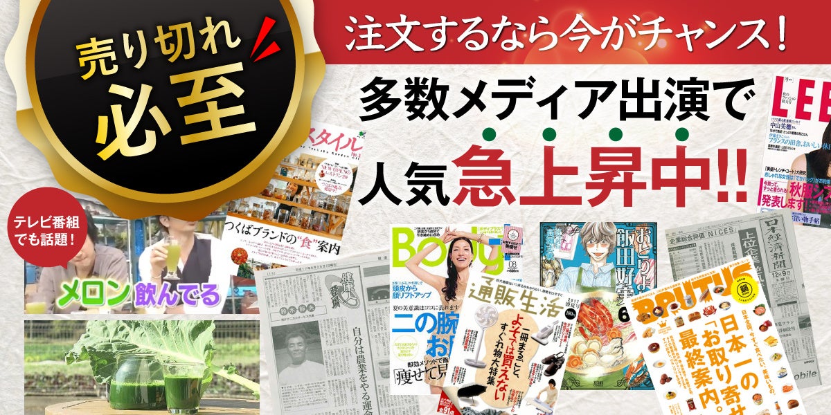 TVだけに留まらず新聞、雑誌、漫画までにもベルファームのコールドプレス製法ジュースが取り上げられ、今では日本人口換算の5人に1人は飲まれるという【累計2000万パック】を突破するほど注目されています。