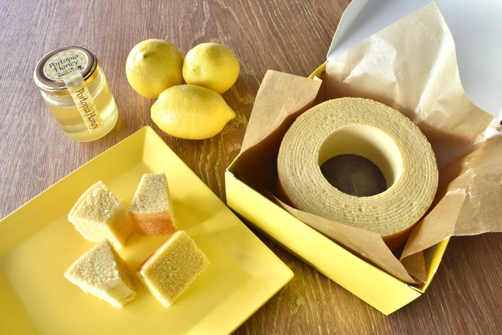 このオリジナルバウムクーヘンは、ポートピアホテルの敷地内で採れたはちみつを使用しています。神戸の発展の象徴である人工島ポートアイランドの自然の恵みと、神戸より日本全国に広まったバウムクーヘンが出会い、このコラボレーションが実現しました。レモンの風味の中にはちみつのやさしい甘さが広がる、ここでしか味わうことのできない絶妙なレシピと熟練の技が織りなす上質な味と食感をぜひご賞味ください。