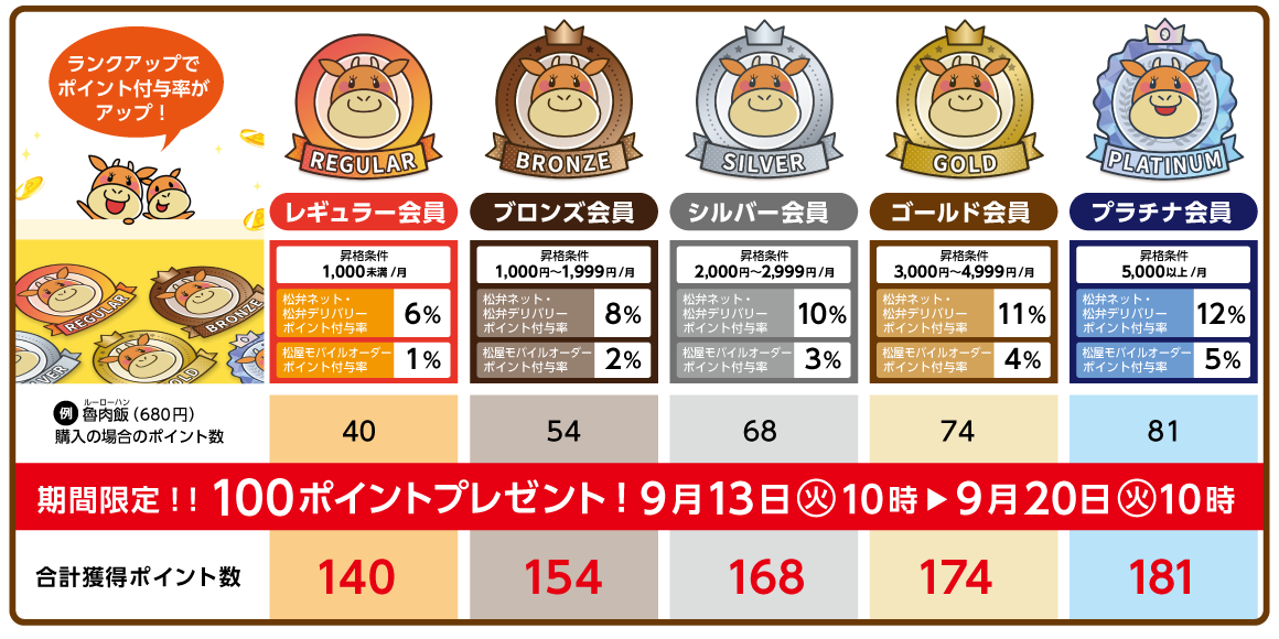 | ▶▶おトク情報をチェック ◎お得なクーポン配信中!事前予約がお得な「松弁ネット」のご注文も!「松屋フーズ公式アプリ」 各種ブランドのご案内やモバイルオーダー、松弁ネットのご案内。さらにお得なクーポンを配信しています。 URL:https://www.matsuyafoods.co.jp/mobile/ ◎豊富なキャッシュレス決済に対応 ◎店舗限定で開催中のキャンペーン情報はコチラ! ◎松屋【公式】Twitterアカウント @matsuya_foods |