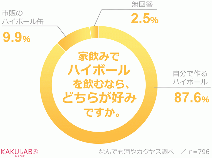 株式会社カクヤス(本社:東京都北区、代表取締役社長:佐藤順一、以下:当社)は、カクヤスメールマガジンに登録している当社のユーザーを対象に、おうち飲みに大人気の「ハイボール」について、アンケート調査を行いました。