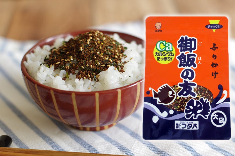 熊本県のふりかけ製造メーカーフタバの御飯の友。日本で最初に商品化されたふりかけ。