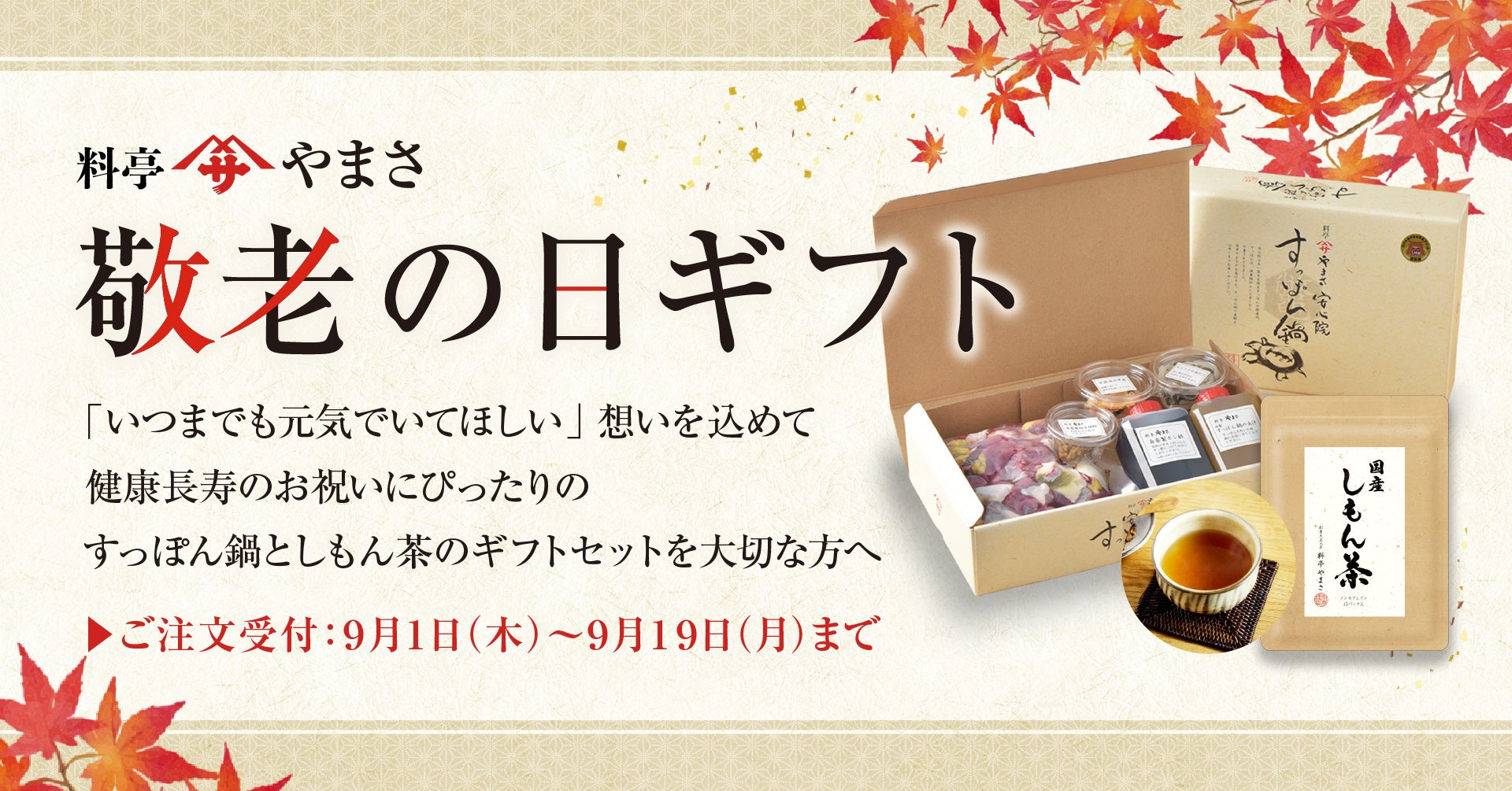 食べログアワード6年連続受賞のすっぽん専門料理店『料亭やまさ』が、9月1日(木)~9月19日(月)の期間に「敬老の日キャンペーン」を実施します!元気食材の「すっぽん鍋」と健康茶である「しもん茶」のギフトセットを販売!