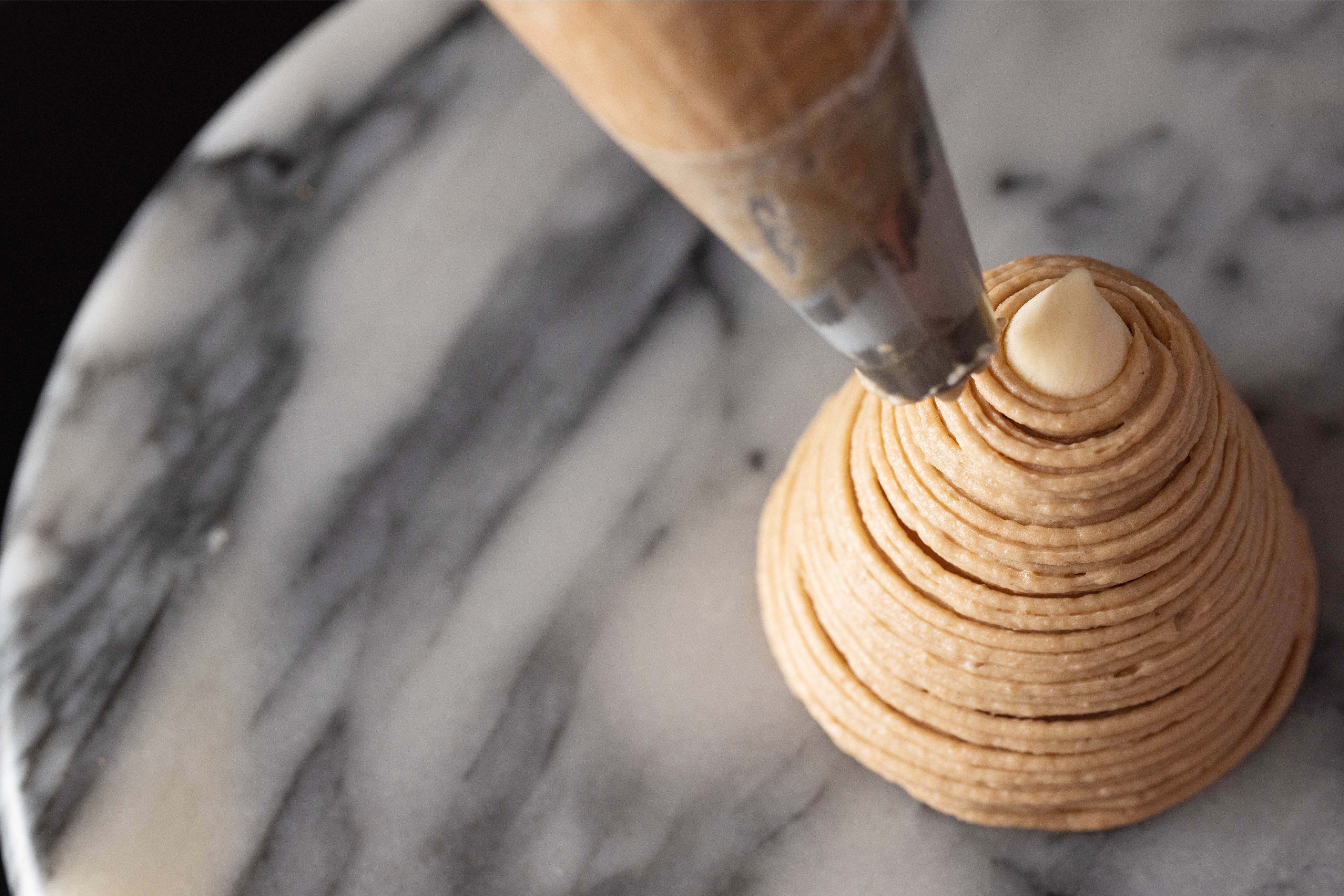 ラム酒とマロン、2種類のムースを重ねマロンクリームを絞ったモンブランです。