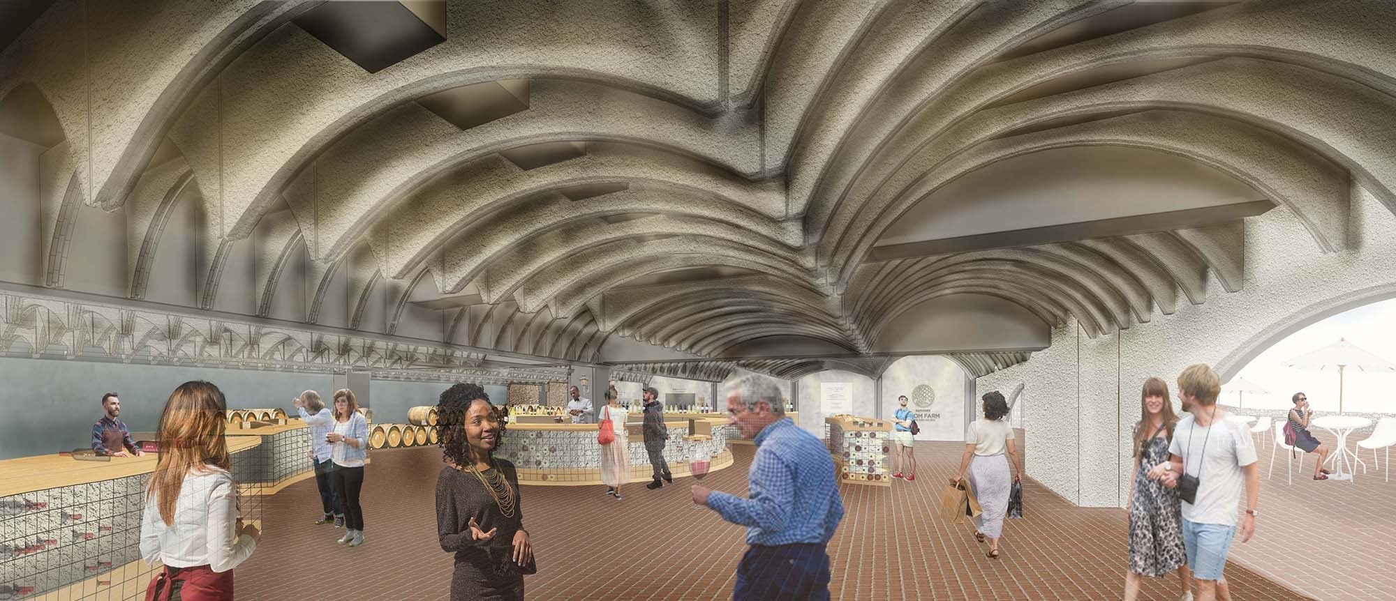 歴史を感じられる厳かな雰囲気の中で日本ワインが時間をかけて熟成される様子をより感じていただけるように、熟成庫のありのままの姿を活かしつつ、照明による空間演出を行います。