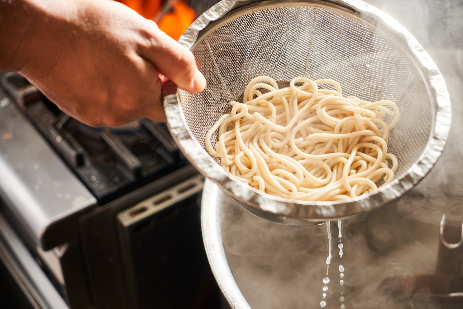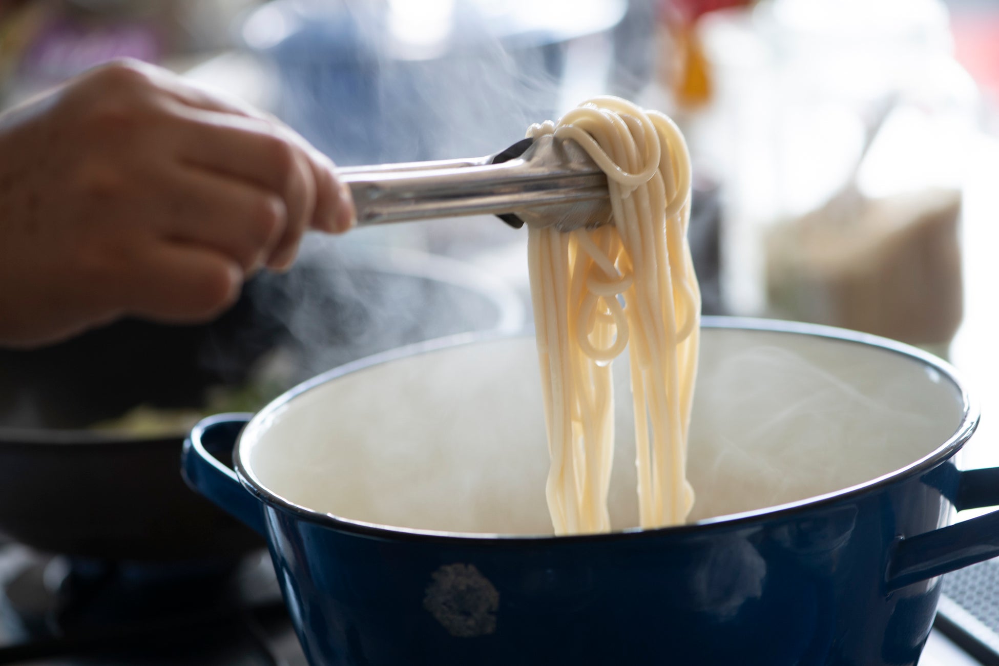 99麺あきたこまち玄米麺は保水・吸水率が高く、表面がツルツルしているのが特徴です。 「炒める」「煮る」などがおすすめで味が染み込み、ソースや出汁と絡みやすくより一層美味しくいただけます。パスタ、うどん、ラーメンなどすべての麺料理の調理法と相性がよく、和風テイストなど「ご飯」に合うものにも相性抜群です。茹でた際の保水率抜群でぷるぷるとした食感、腹持ちの良さも特長です。