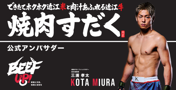 今回のCMでは、総合格闘家である三浦孝太氏の「若さと無限の可能性、格闘家として闘う姿勢」×私たちのブランドコンセプトである「Beef UP 〜家族に元気、地域に活気を!〜」をイメージしたCMを作成させていただきました。三浦孝太氏の颯爽感あふれるシャドーボクシングのカッコイイ姿が見どころです。