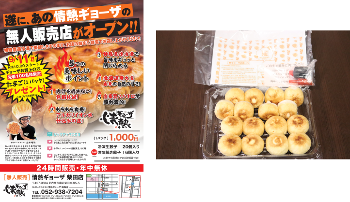 冷凍餃子の無人販売所は近年続々と増えていますが、冷凍焼き餃子の販売は今回が日本初(※)。美味しい焼き方にこだわる「情熱ギョーザ」ならではの、餃子の無人販売の新展開です。今後は、より多くのお客様に「情熱ギョーザ」の美味しさを体験いただけるよう、店舗拡大を計画中。「情熱ギョーザ」の冷凍餃子無人販売店を、どうぞご期待ください。