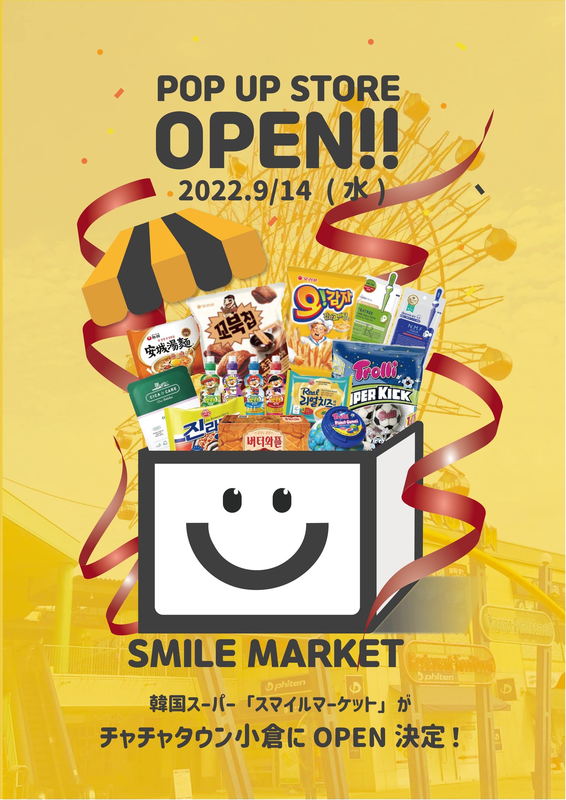 株式会社西日本新聞社(本社:福岡市、代表取締役社長:柴田 建哉)は、韓国食材やグッズ販売を行う株式会社THINK DO(本社:福岡市、代表取締役:鄭 承勲)との共同運営により、韓国スーパー「スマイルマーケット」のポップアップストアを、チャチャタウン小倉2階にて2022年9月14日(水)より期間限定で開催いたします。